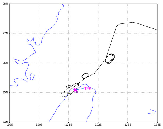 To assess the accuracy of the model’s forecast, the wind observations made at Luzhu station (location in Figure 2b) near the airport are considered, and they are compared with the simulated winds shown in Figure 7b. The wind direction difference is in the order of around 20 degrees. The wind speed difference is in the order of a few m/s. The simulated results are considered to be reasonable.