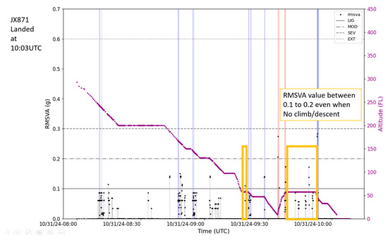 In addition to flight JX871, analyses of RMSVA data have also been conducted for the flights shortly before and after. The RMSVA data are shown in Figure 10.