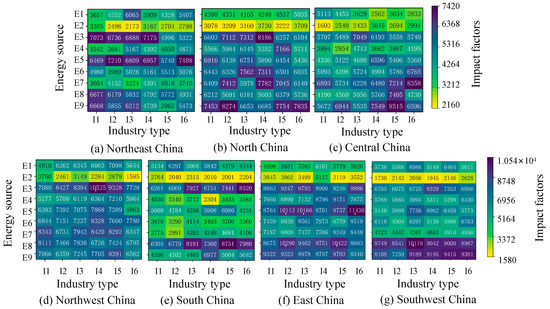 (3) All industries have a relatively high degree of dependence on coal, coke, kerosene, and fuel oil, resulting in large carbon emissions, with average impact factors of 7140, 7217, 6610, and 7310, respectively.