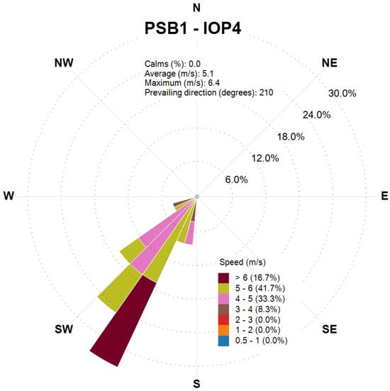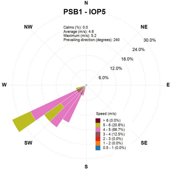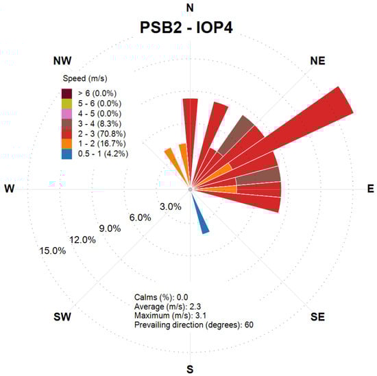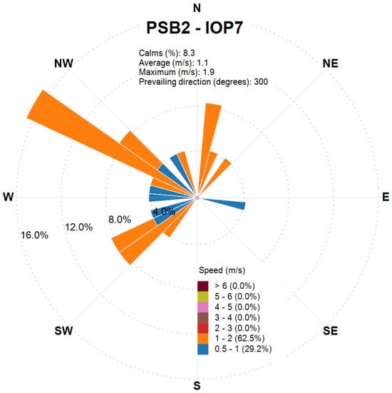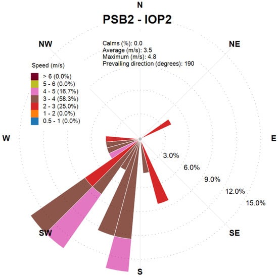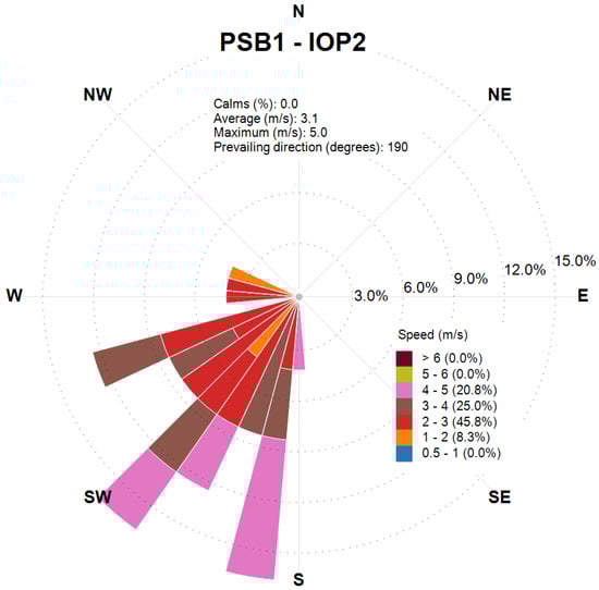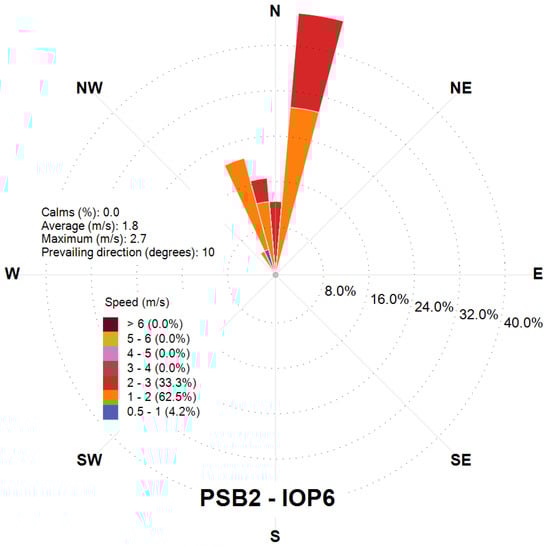 Wind rose obtained from the CALMET output at the release location for the final 2 h of PSB2-IOP7.