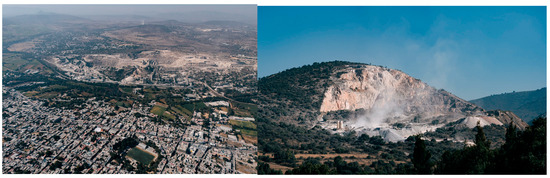The Mezquital Valley academic studies had focused their efforts on the petrochemical industry’s impact on water [29] and land [30,31] and biodiversity [32], but there are no studies focused on the particular impacts of non-metallic mining activities; while there are some approaches on the environmental impacts in this area, most are systemic. Consequently, it is essential to estimate the impact of mining and cement production areas [33] on air quality. In addition to air quality monitoring, a dispersion modeling study is required to assess the impact, especially to aid in decision-making and the implementation of measures to reduce air pollution. Therefore, the primary objective of this study is to quantify the contribution of open-pit mining activities to air quality within the Tula Atmospheric Basin and the evaluation of the social impact of PM10 in the study area.