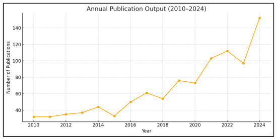 Annual publication output on the topic of extreme weather and air transport operations (2010–2024), based on data from the Web of Science Core Collection.