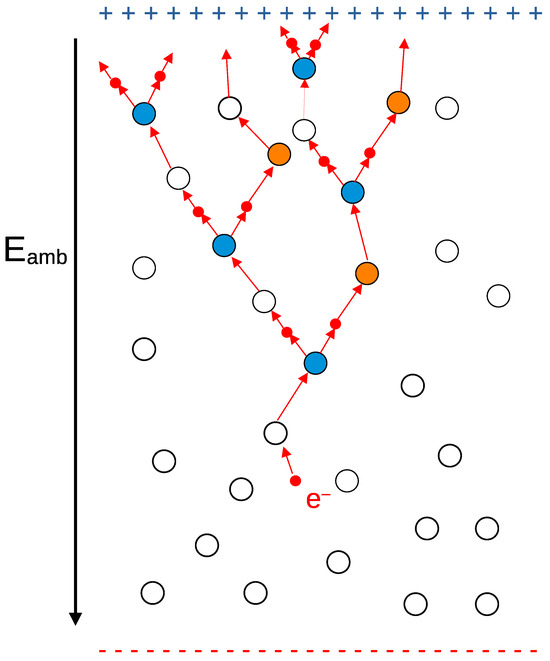 The first step towards a streamer discharge is an electron avalanche formed through electron impact ionization in the electric field of two electrodes (Figure 5). For a given electron number moving towards the anode, the number of new electrons within a distance is