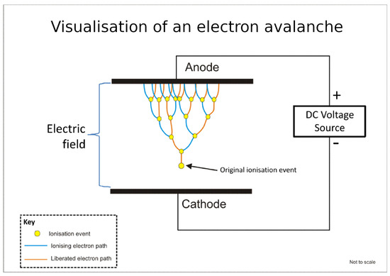 - Dougsim. Wikipedia: Visualisation of a Townsend Avalanche. 2012. Available online: https://en.wikipedia.org/wiki/Townsend_discharge#/media/File:Electron_avalanche.gif (accessed on 10 June 2025).