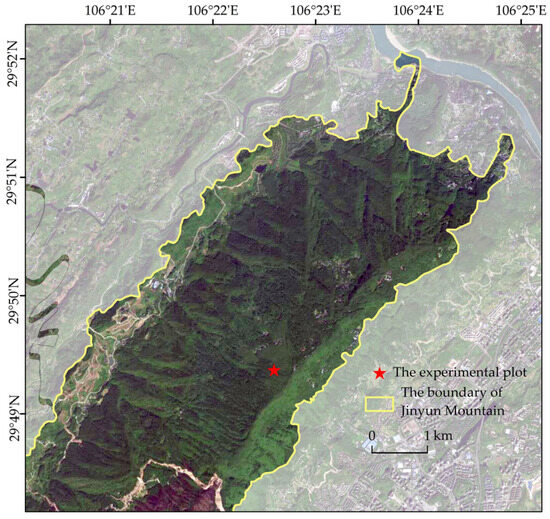The study site is located in Jinyun Mountain National Nature Reserve (106°17′ to 106°24′ E, 29°41′ to 29°52′ N), Chongqing city, China (Figure 1). The area has a humid subtropical monsoon climate. The mean annual precipitation is about 1360 mm, with 70% of rain occurring from April to October. The average annual relative air humidity is 87%, and the mean annual temperature is 14.8 °C.