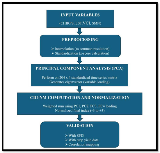 Poudel, B.; Dahal, D.; Shrestha, S.; Sewa, R.; Kalra, A. Developing a Composite Drought Indicator Using PCA Integration of CHIRPS Rainfall, Temperature, and Vegetation Health Products for Agricultural Drought Monitoring in New Mexico. Atmosphere 2025, 16, 818. https://doi.org/10.3390/atmos16070818