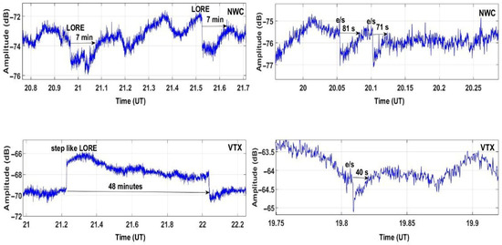 We also recorded a significant number of step-like VLF LOREs (~10% of the total). This category of VLF LORE is typically characterized by very long or indefinite recovery times [8].