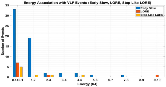 Furthermore, about 24.46% of early/slow events were linked to lightning strokes with energies between 1 and 2 kJ—significantly higher than the proportions observed for LOREs and step-like LOREs in this energy range.