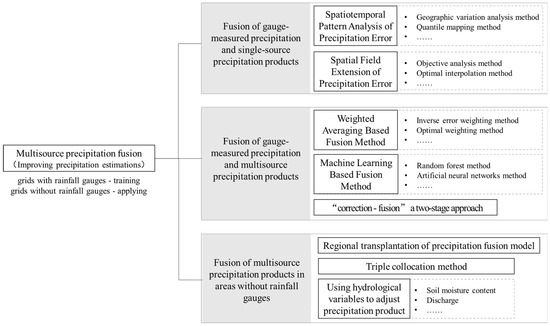 Although precipitation data measured by gauge are the most accurate, their precision and coverage decreases beyond their range of measurement. Precipitation products offer global-scale estimations, but only reflect the general precipitation trend. Moreover, the strengths and weaknesses of multisource precipitation products vary under different conditions. Consequently, integrating multisource precipitation has emerged as a research hotspot for improving precipitation estimation accuracy.
