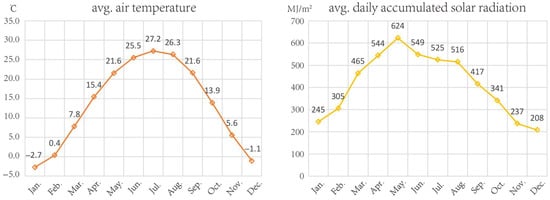 The monthly change pattern of air temperature and solar radiation in Beijing (2002–2022).