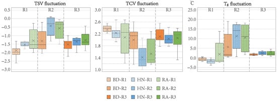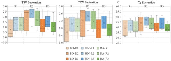 In R3, the mTSV, mTCV, and mTg in BD still slightly underperformed relative to HN and RA but the differences became insignificant compared to R1 and R2. In addition, when comparing HN and RA, the differences in all indices between the two blocks were not significant.