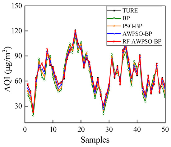 As the problem of air pollution has seriously affected people’s health and economic development, the prediction and control of air pollution have now become an urgent direction in research today. Although the traditional BP model is a widely used prediction method, it is prone to being caught in minimal value and slow convergence speed, adding difficulty in accurately predicting AQI. The combined prediction model based on RF-AWPSO-BPNN proposed in this paper is capable of improving the accuracy of air quality prediction. By analyzing and comparing AWPSO simulation tests and experimental data, the following conclusions are drawn.