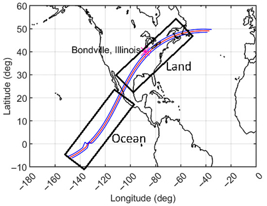 The whole analysis in this paper dived into ocean (Box-1) and land regions (Box-2), as shown in Figure 1. Further, we used surface meteorological parameters (Net Radiation (NR), surface temperature, relative humidity, and wind speed) obtained from SURFRAD (Surface Radiation Budget) Network (https://gml.noaa.gov/grad/surfrad/overview.html (accessed on 14 July 2025)) during the month of April 2024 over Bondville, Illinois, USA (88.37° W, 40.05° N), to study the solar eclipse’s impacts on surface meteorological variables.