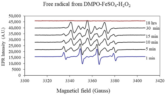 - Davies, M.J. Detection and characterisation of radicals using electron paramagnetic resonance (EPR) spin trapping and related methods. Methods 2016, 109, 21–30. [Google Scholar] [CrossRef] [PubMed]