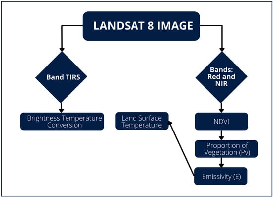 The graphical workflow used for calculating land surface temperature from Landsat 8 is provided below in Figure 2.