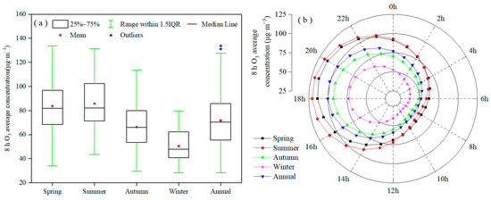 Variations of 8 h O3 concentration in the YRD urban agglomeration at the (a) seasonal scale and (b) hourly scale.