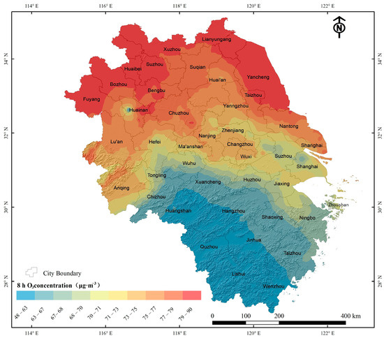 3.1.2. Spatial Variations in 8 h O3 Concentration