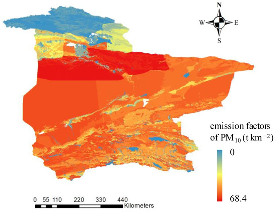 - Li, T.; Bi, X.; Dai, Q.; Liu, B.; Han, Y.; You, H.; Wang, L.; Zhang, J.; Cheng, Y.; Zhang, Y. Improving Spatial Resolution of Soil Fugitive Dust Emission Inventory Using RS-GIS Technology: An Application Case in Tianjin, China. Atmos. Environ. 2018, 191, 46–54. [Google Scholar] [CrossRef]