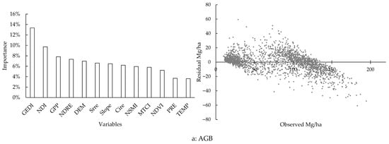 | AGB | NDVI, NDRE, NSMI, SRRE, CIRE, MTCI, NDI, GEDI, DEM, Slope, GPP, TEMP, PRE |