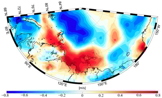 Average surface velocity change per decade in the Laptev Sea–East Siberian Sea during the summer of 1998–2020.