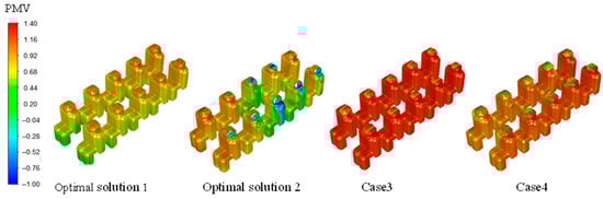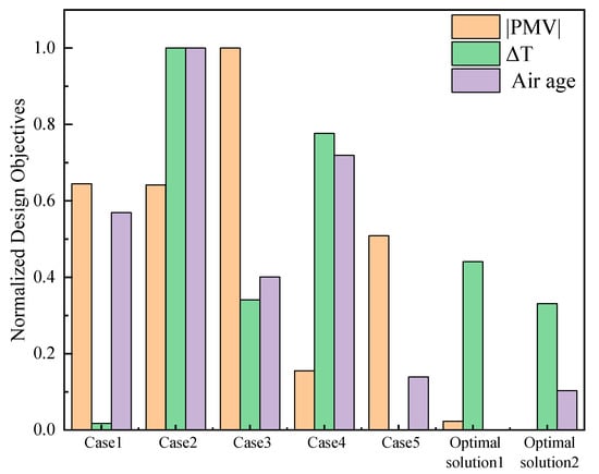 (3) The entropy weight method was applied to determine the optimal solutions from both optimization algorithms. The distributions of PMV and air age for optimal and randomly selected design variables were analyzed, leading to practical design recommendations for enhanced cabin environmental quality and energy efficiency.
