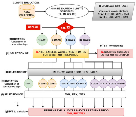 Workflow of the calculation steps of the methodology followed for the case of the TX hazard.