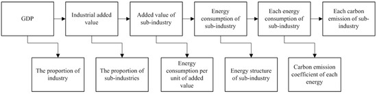 Decomposition analysis is a very good method that can not only explain the trajectory of carbon emissions but also predict the peak of future carbon emissions [29,30,31]. It can avoid the invalidity caused by multicollinearity between elements in multivariate statistical analysis [32].