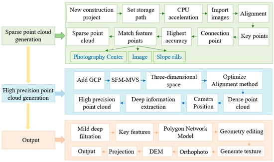 The core of the SFM algorithm is to recover the 3D structure of the scene and the motion trajectory of the camera by analyzing 2D image sequences taken from different angles [50]. Its overall structural framework is shown in Figure 4.