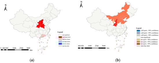 Spatial clustering (a) and hotspot (b) distribution of China’s CH4 emissions from 2000 to 2023.