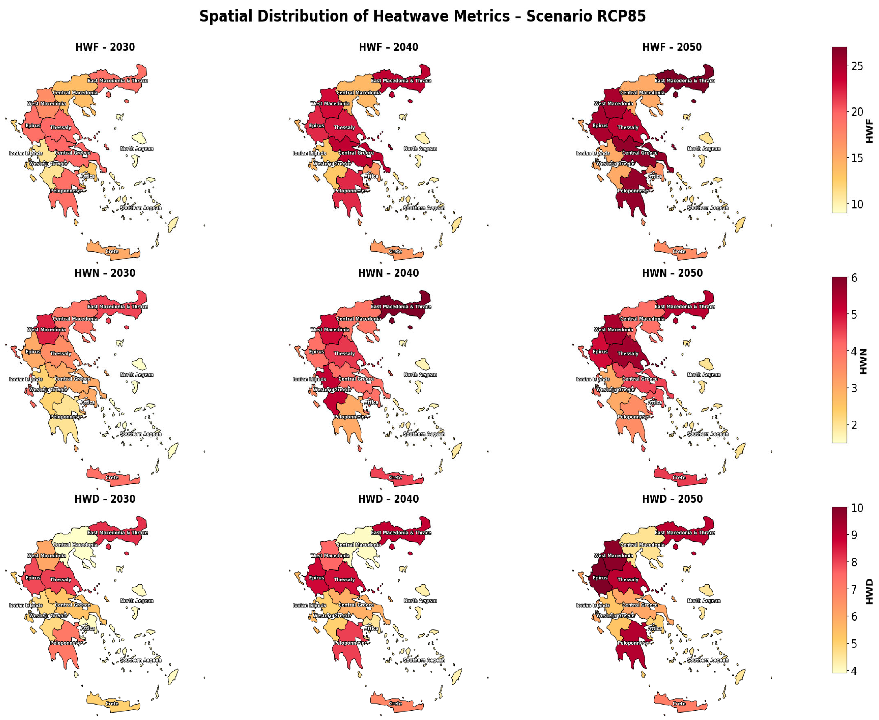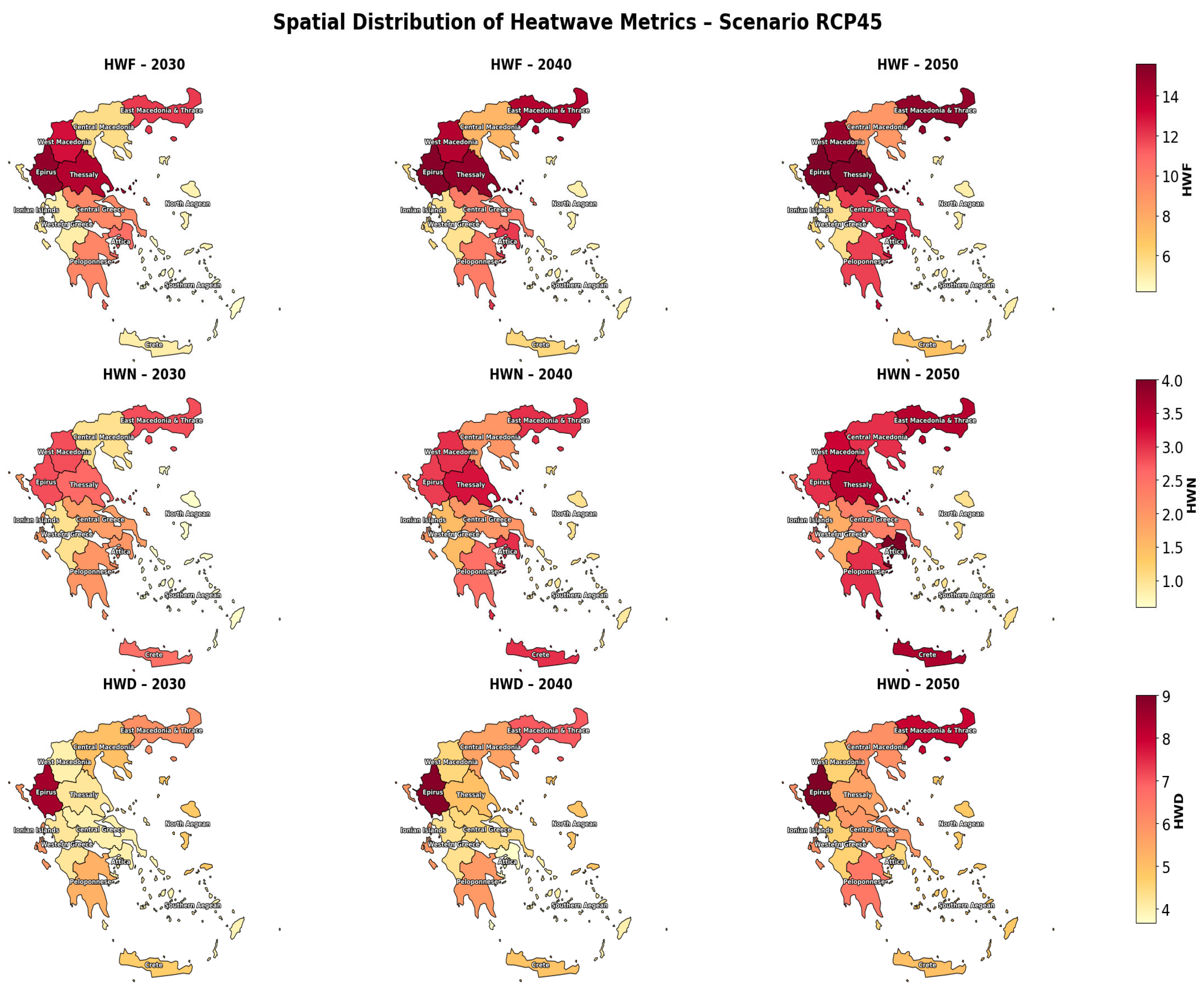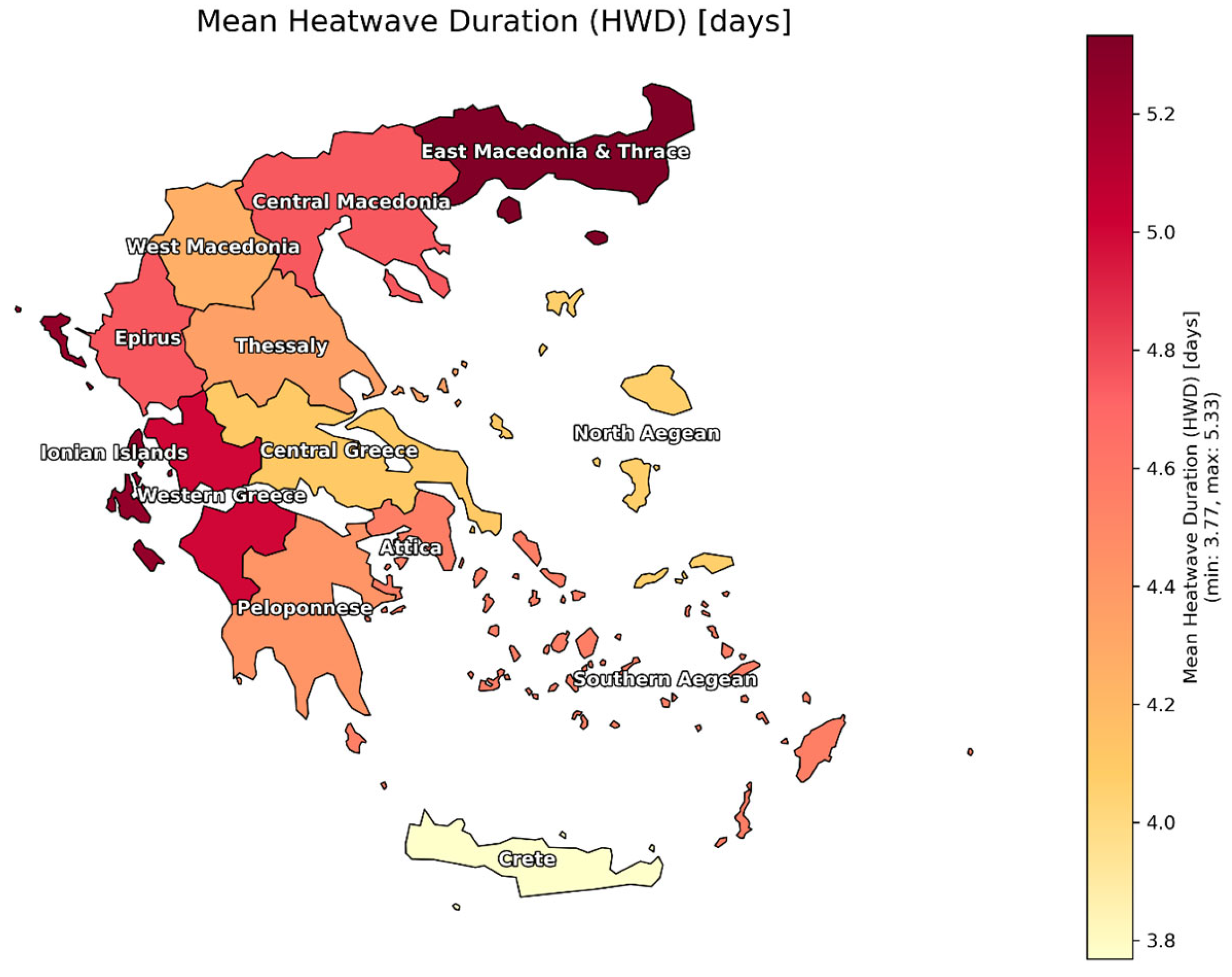 - Heatwave Duration (HWD): The average duration (in days) of individual heatwave events per season;