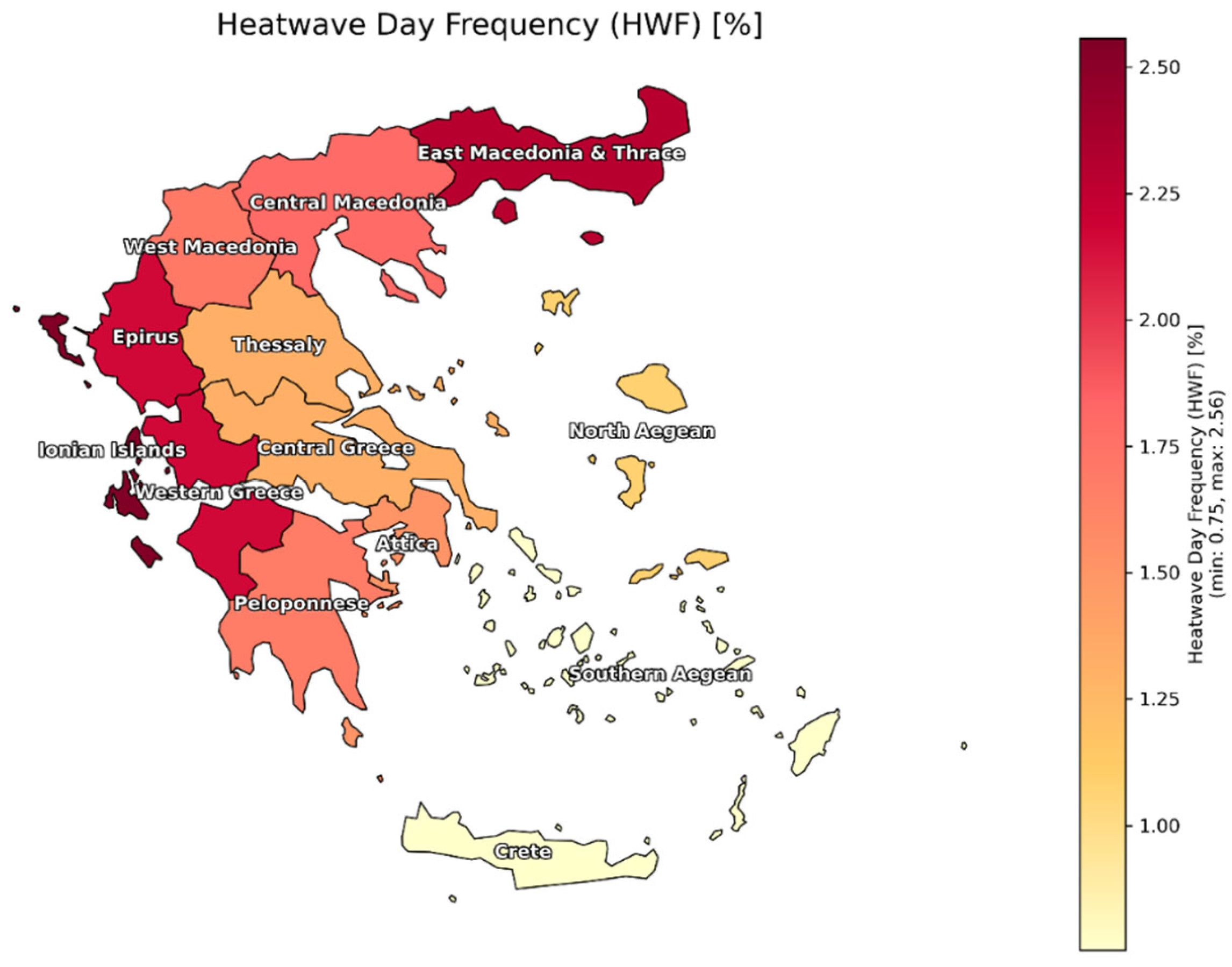 - Heatwave Frequency (HWF): The total number of heatwave days (i.e., days part of a heatwave) within each summer season;