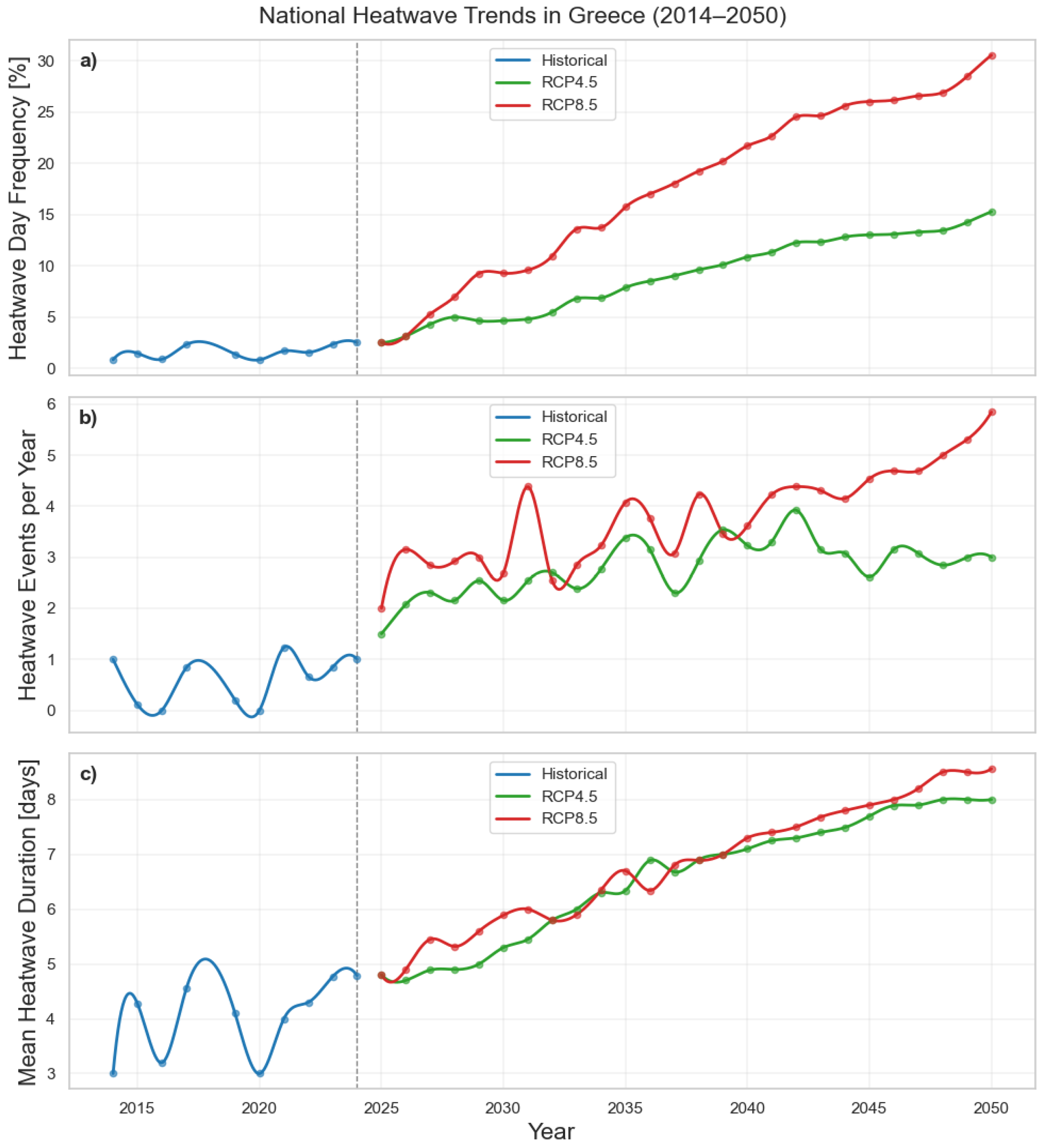 3.2. Projected Heatwave Trends Under RCP Scenarios (2026–2050)
