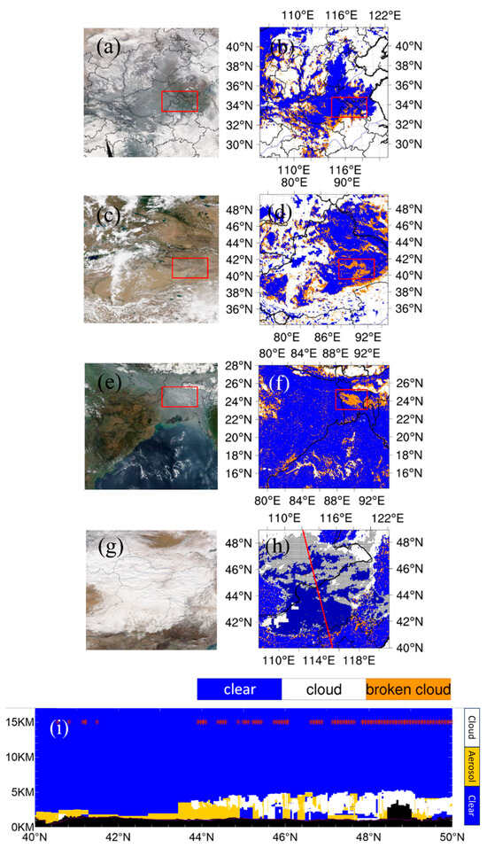 - Zhang, X.; Tan, S.C.; Shi, G.Y.; Wang, H. Improvement of MODIS cloud mask over severe polluted eastern China. Sci. Total Environ. 2019, 654, 345–355. [Google Scholar] [CrossRef] [PubMed]