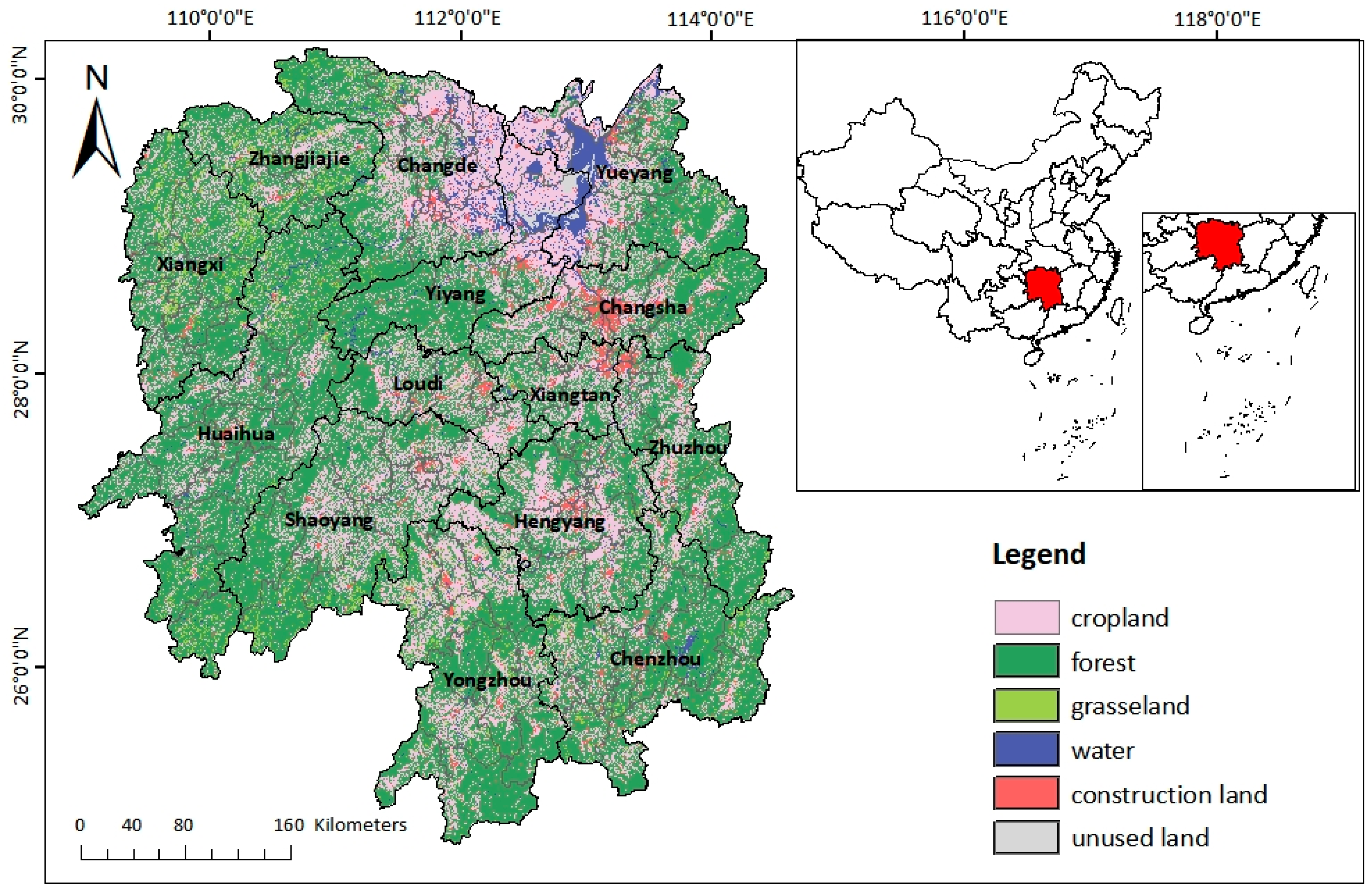 - Hunan Provincial Rural Economic Survey Team. Hunan Provincial Rural Statistical Yearbook; Hunan Provincial Bureau of Statistics: Changsha, China, 2020.