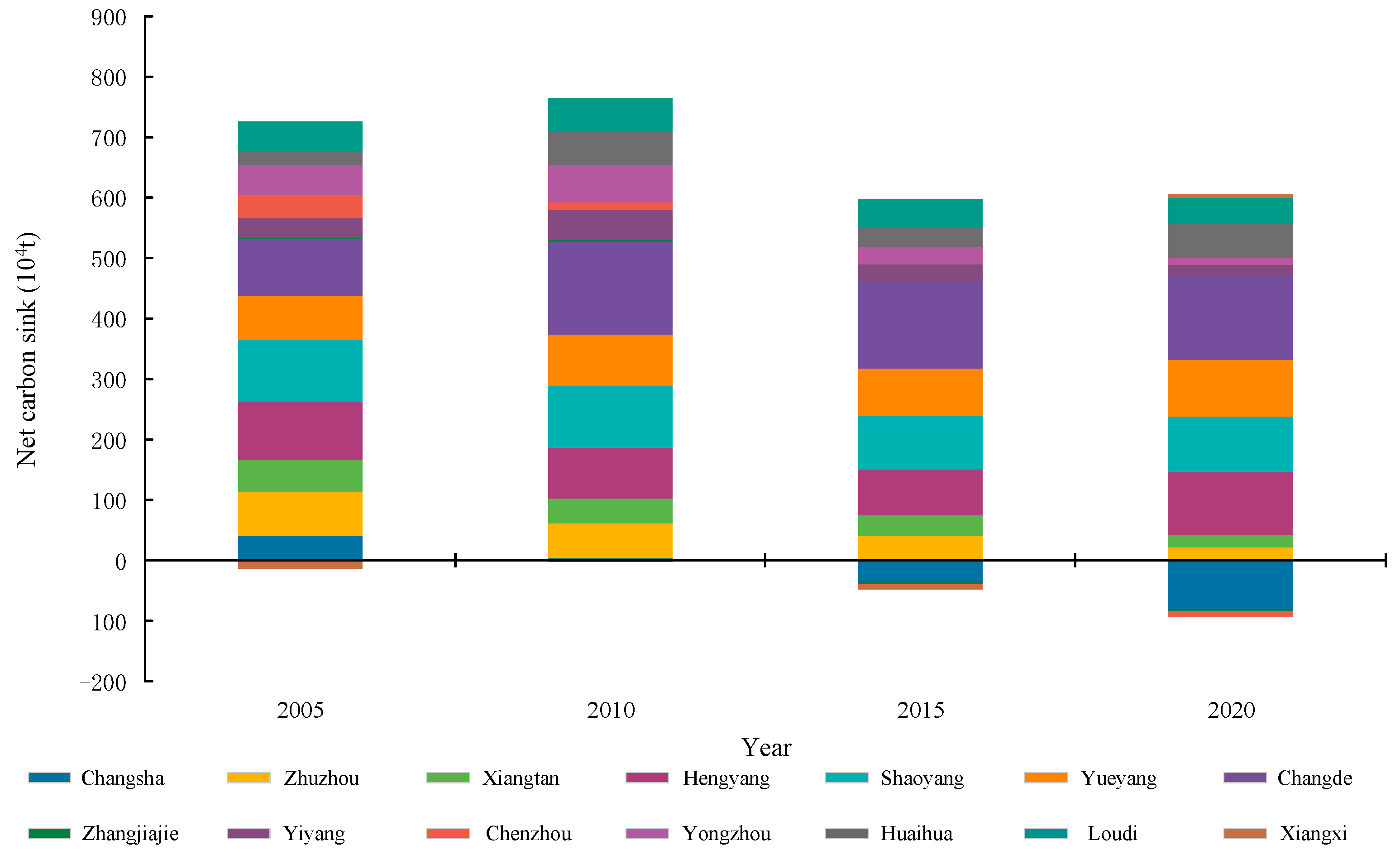 3.1. Temporal Characteristics of Net Carbon Sinks
