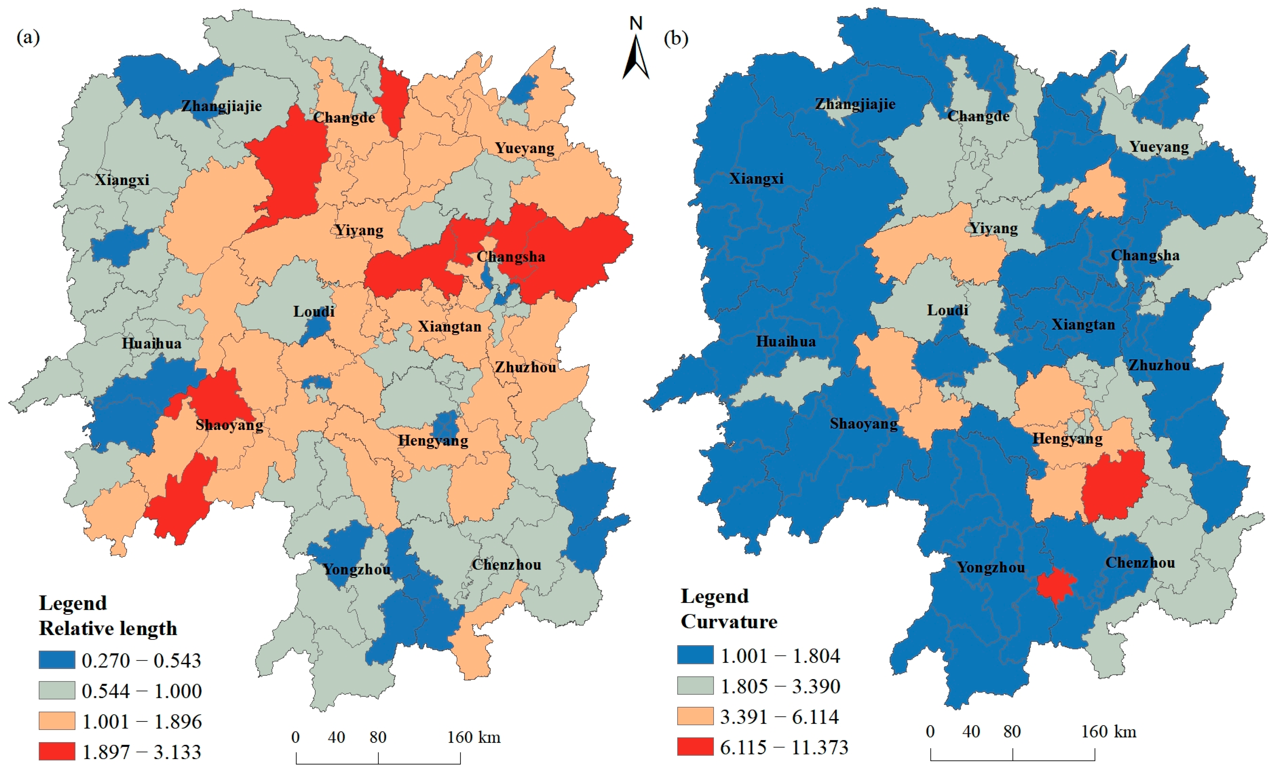 - From 2005 to 2020, the dynamic evolution of the local spatial correlation pattern of net carbon sinks in county-level farmland ecosystems in Hunan Province showed obvious differences. The areas with larger LISA time path moving lengths are mainly distributed in some counties in eastern and central Hunan, and the overall trend is eastern Hunan > central Hunan > northern and southern Hunan. This shows that eastern and central Hunan have more dynamic local spatial structures, while southern and northern Hunan have relatively stable local spatial structures. The curvature of the LISA time path shows a trend of decreasing horizontally from the center to the east and west. Leiyang City, Jiahe County and Shigu District have the greatest volatility in the spatial dependence direction, while the spatial dependence direction of Chaling County, Longshan County and Ningxiang City is the most stable.
