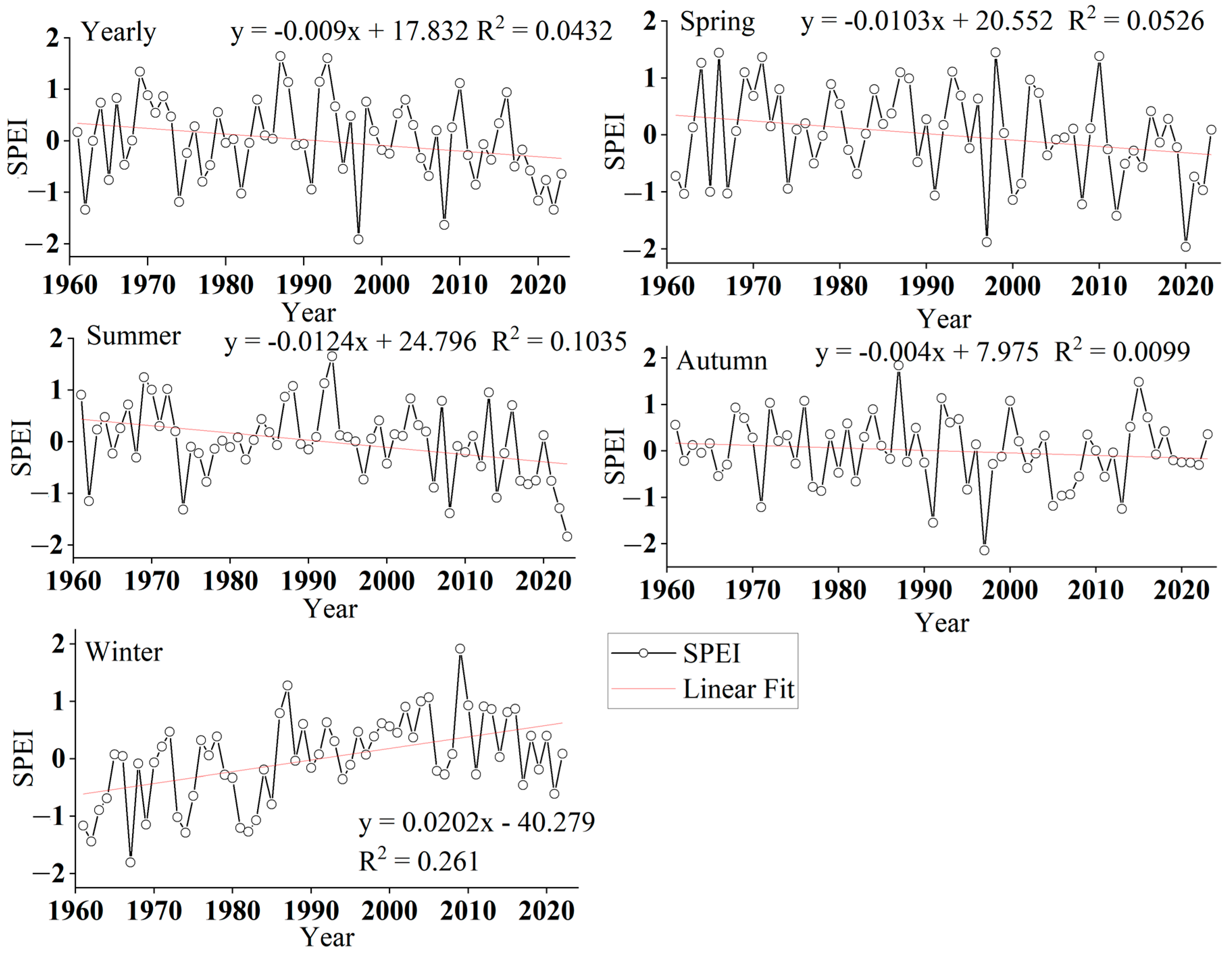 4.1. The Spatio-Temporal Variation Characteristics of Drought Intensity