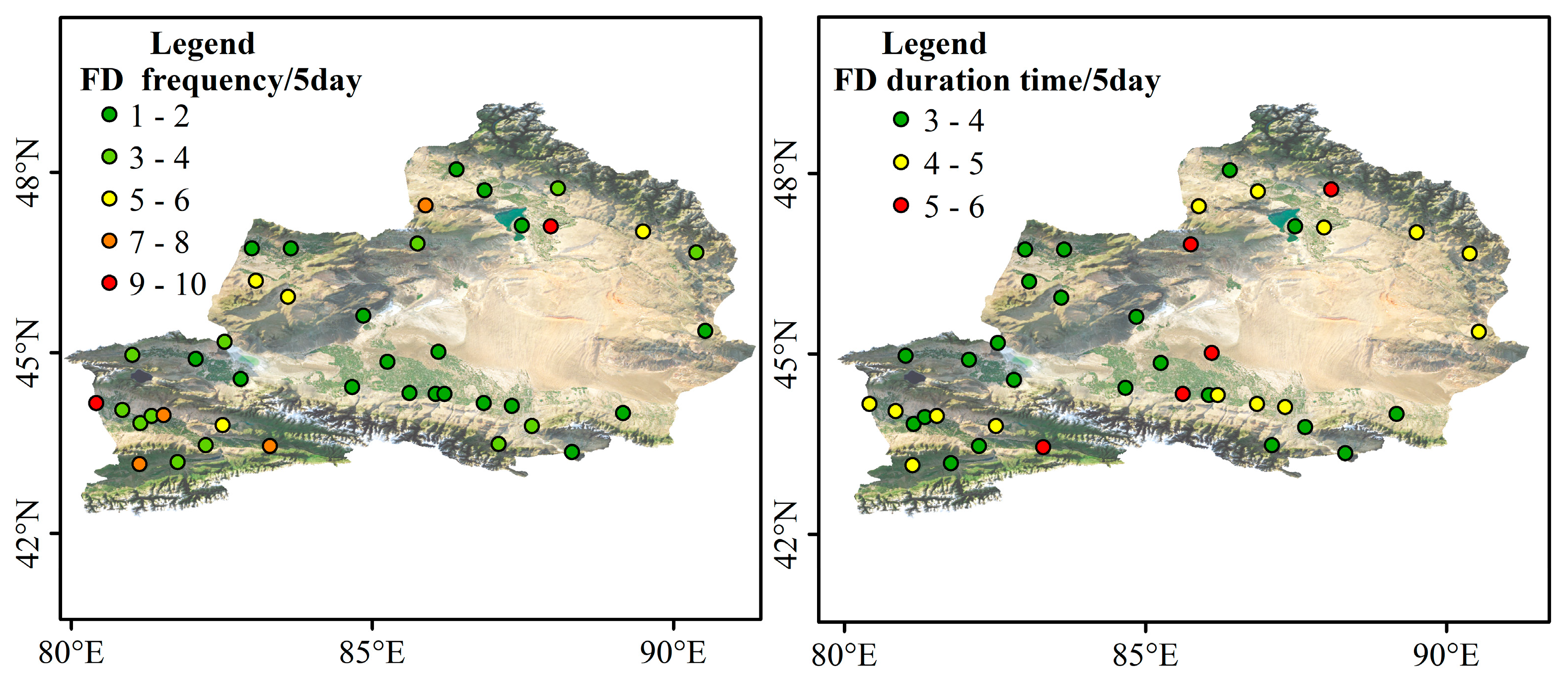 - Wu, M.H.; Wang, H.J.; Sun, G.L.; Xu, C.C. Formation and risk analysis of meteorological disasters in Xinjiang. Arid Reg. Geogr. 2016, 39, 1212–1220. [Google Scholar]