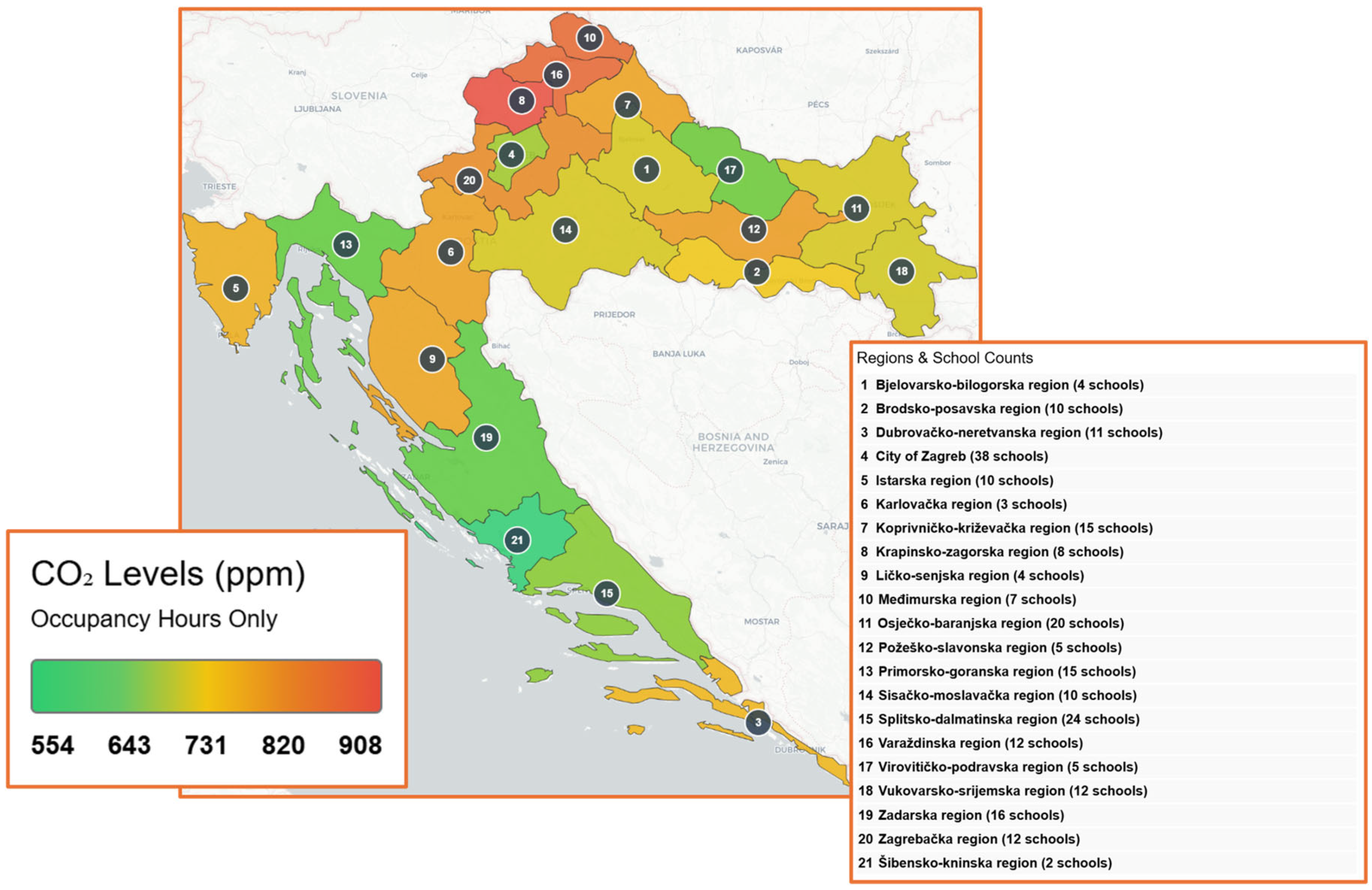 Petrić, V.; Škvarč, G.; Markulin, T.; Račić, N.; Matanović, H.; Mureddu, F.; Burridge, H.; Pehnec, G.; Lovrić, M. Seasonal and Regional Variations in CO2 Concentrations: A Large-Scale Sensor-Based Study from Croatian Schools Using Machine Learning. Atmosphere 2026, 17, 106. https://doi.org/10.3390/atmos17010106