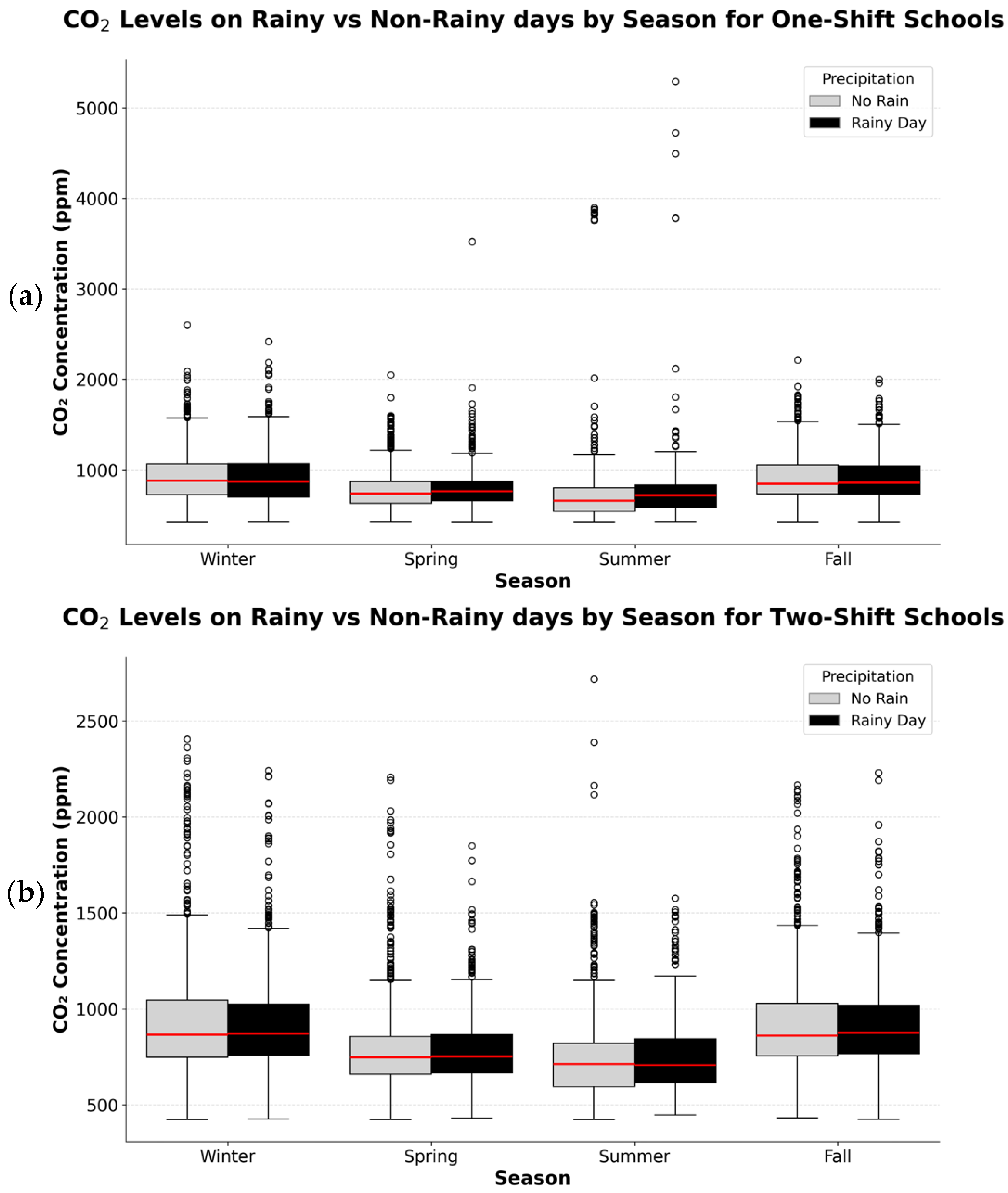 3.3. Climate Influences on Indoor CO2 Concentrations