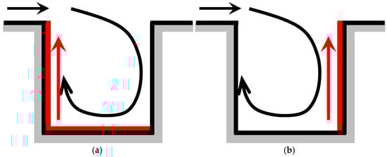 In urban environments, the buoyancy effect arises from variations in ambient air density. These density variations are primarily caused by two factors: changes in air temperature and the transport of high-buoyancy pollutant whose density differs from that of air. Wind tunnel experiments conducted by Uehara et al. [9] and Allegrini et al. [10] have demonstrated the significant influence of thermal buoyancy on cavity flow and dynamics. Computational fluid dynamics (CFD) techniques have been widely employed to investigate flow and dispersion phenomena in thermal environments [11,12,13,14,15,16,17,18]. The CFD models adopted in these studies included Reynolds-averaged Navier–Stokes (RANS) equations [11,16,17,18] and large-eddy simulation (LES) [12,13,14,15]. Mei and Yuan [19] and Jiang et al. [20] explained the coupled effect of wind and thermal buoyancy on ventilation and pollutant transport in a two-dimensional (2D) street canyons. Their findings demonstrated that when the ground and leeward wall are heated, thermal buoyancy enhances the cavity recirculation, leading to lower pollution levels inside the canyon. Conversely, in cases with windward-wall heating, the recirculation was suppressed and could even break into two separate ones, resulting in higher pollution levels.