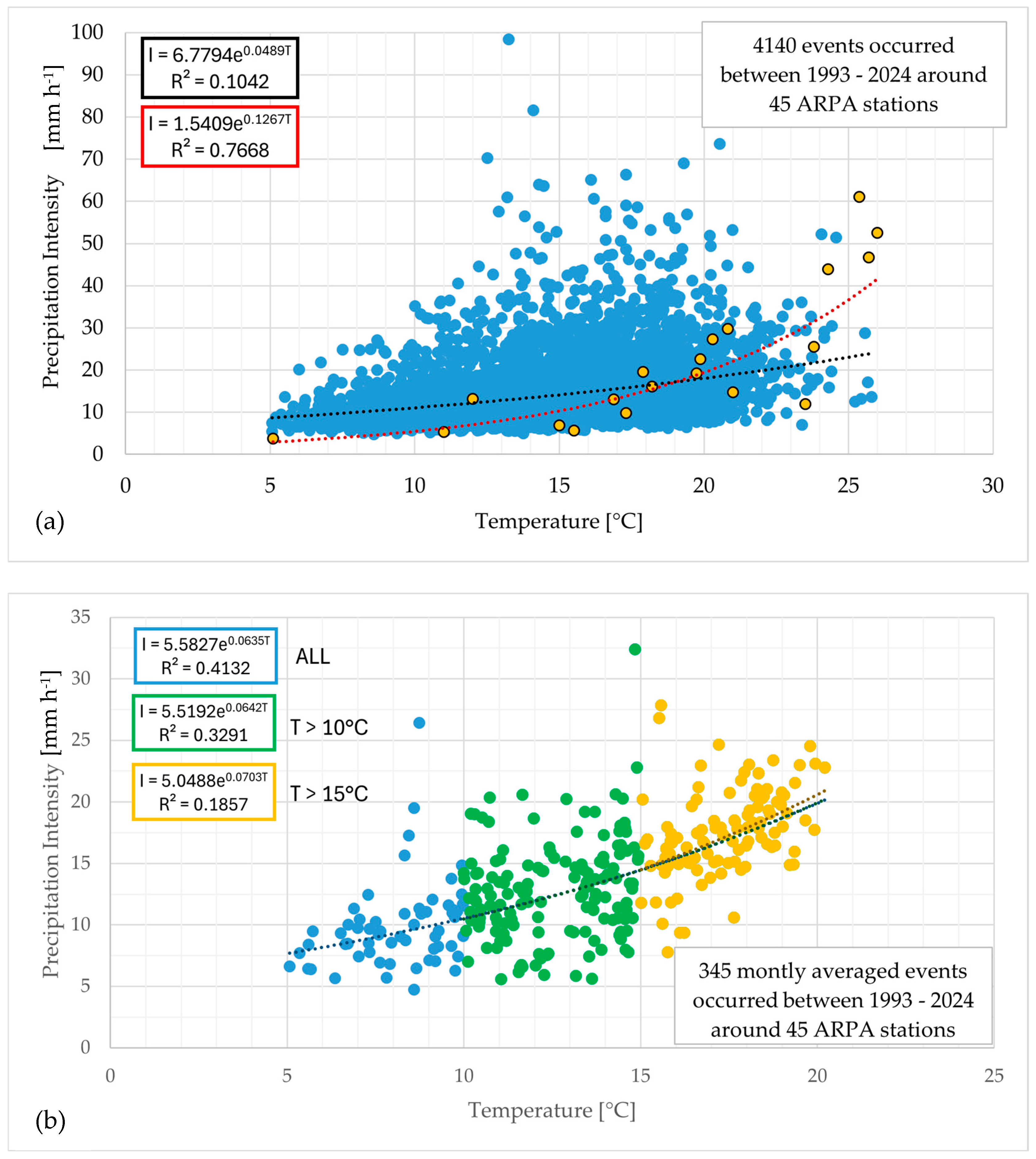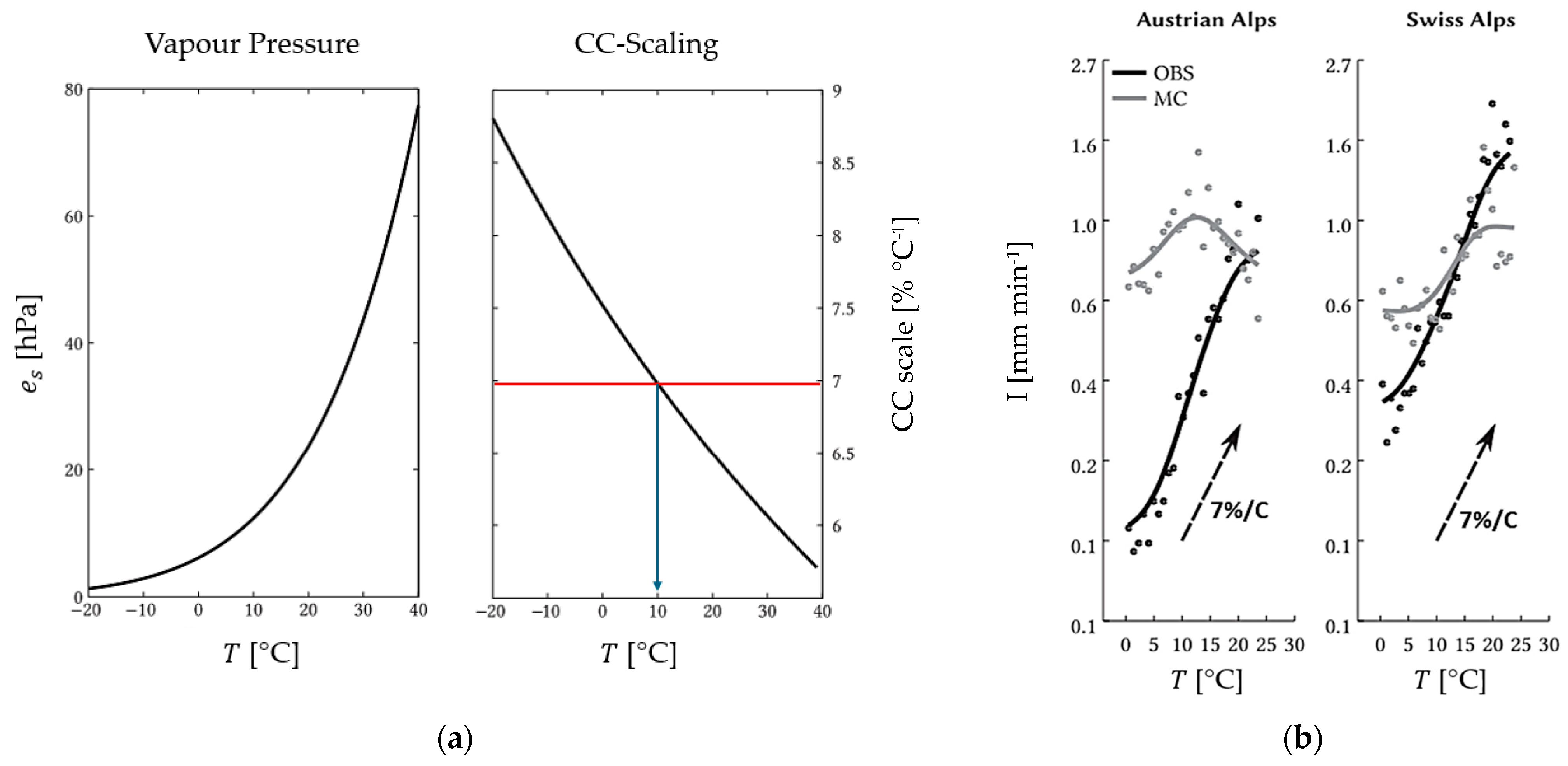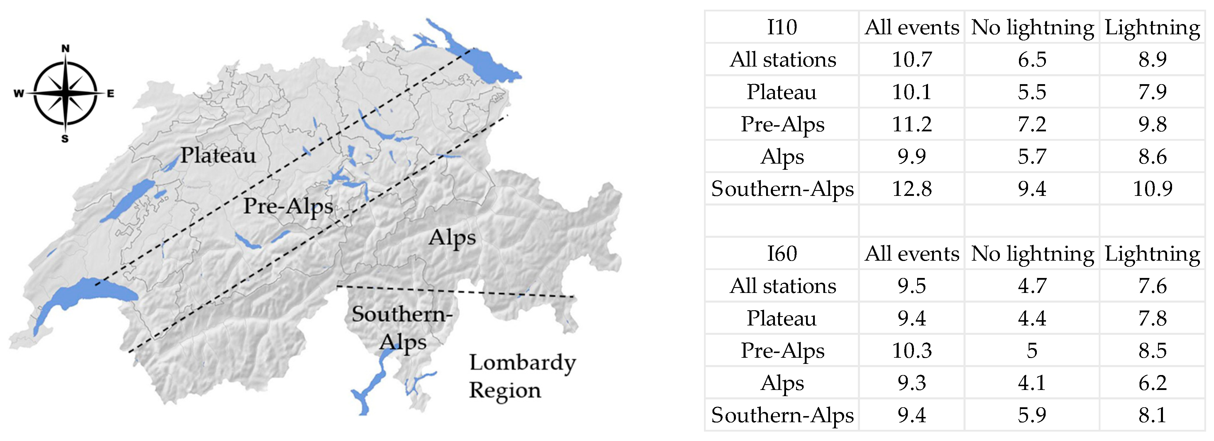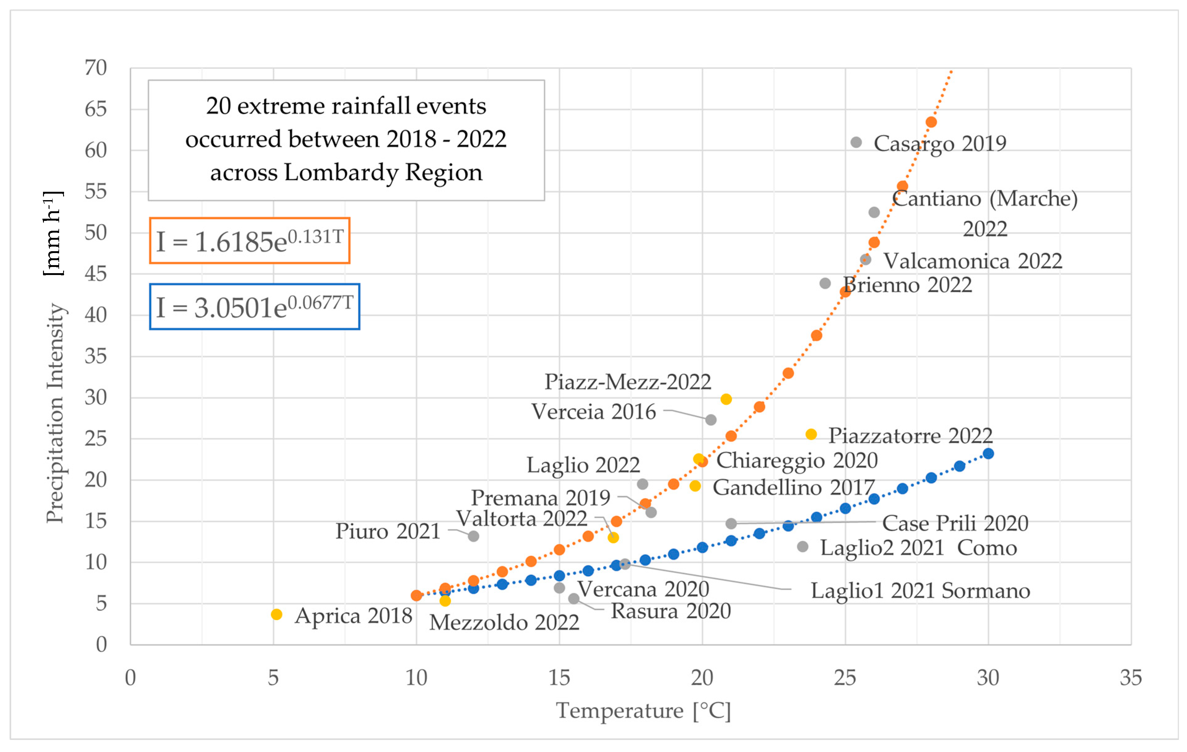 Table 10). In this light, this study conducted across the Lombardy region (located in the Southern Alps) has shown how the intensity of precipitation may scale with the temperature, following CC (7% °C