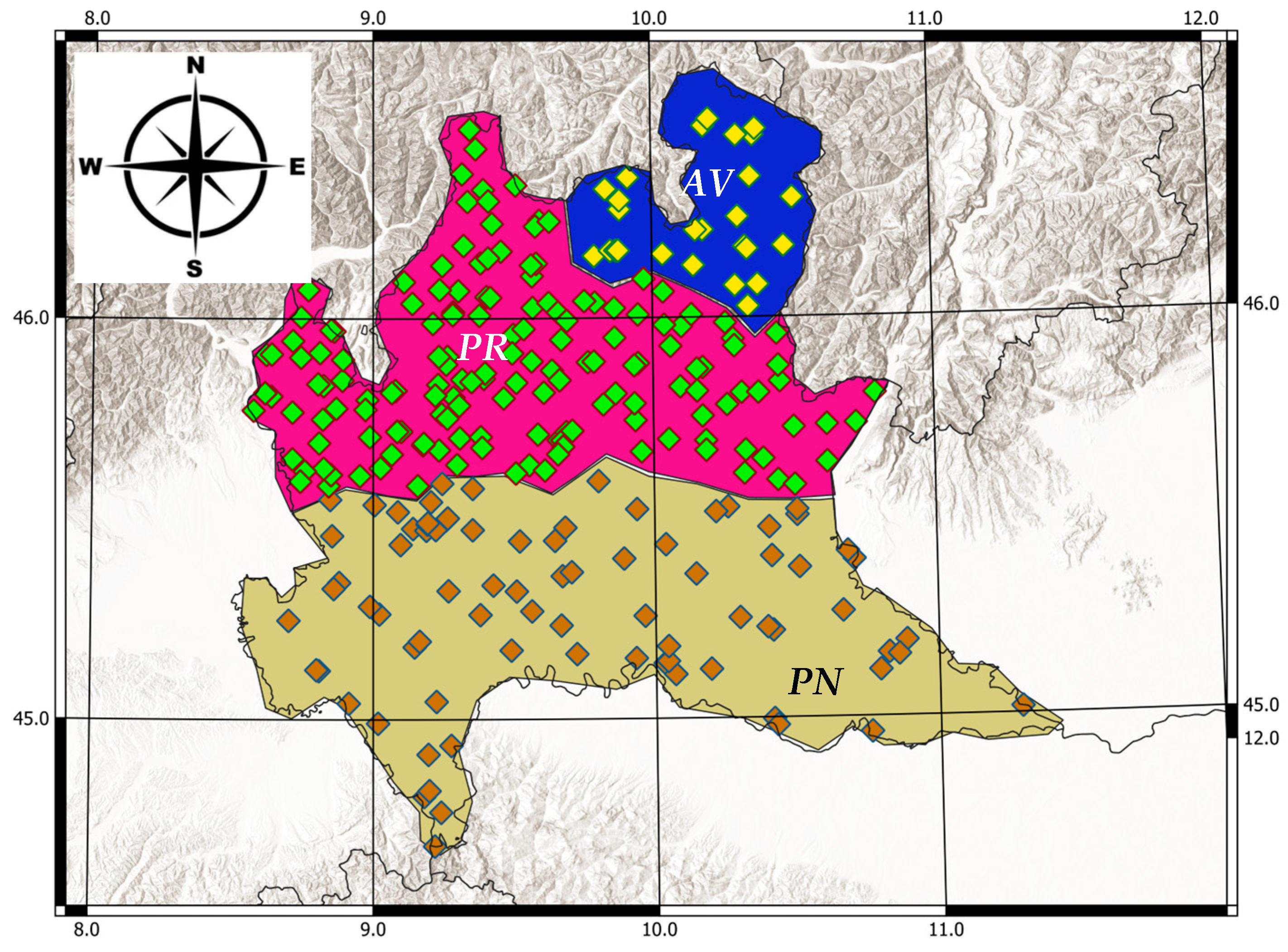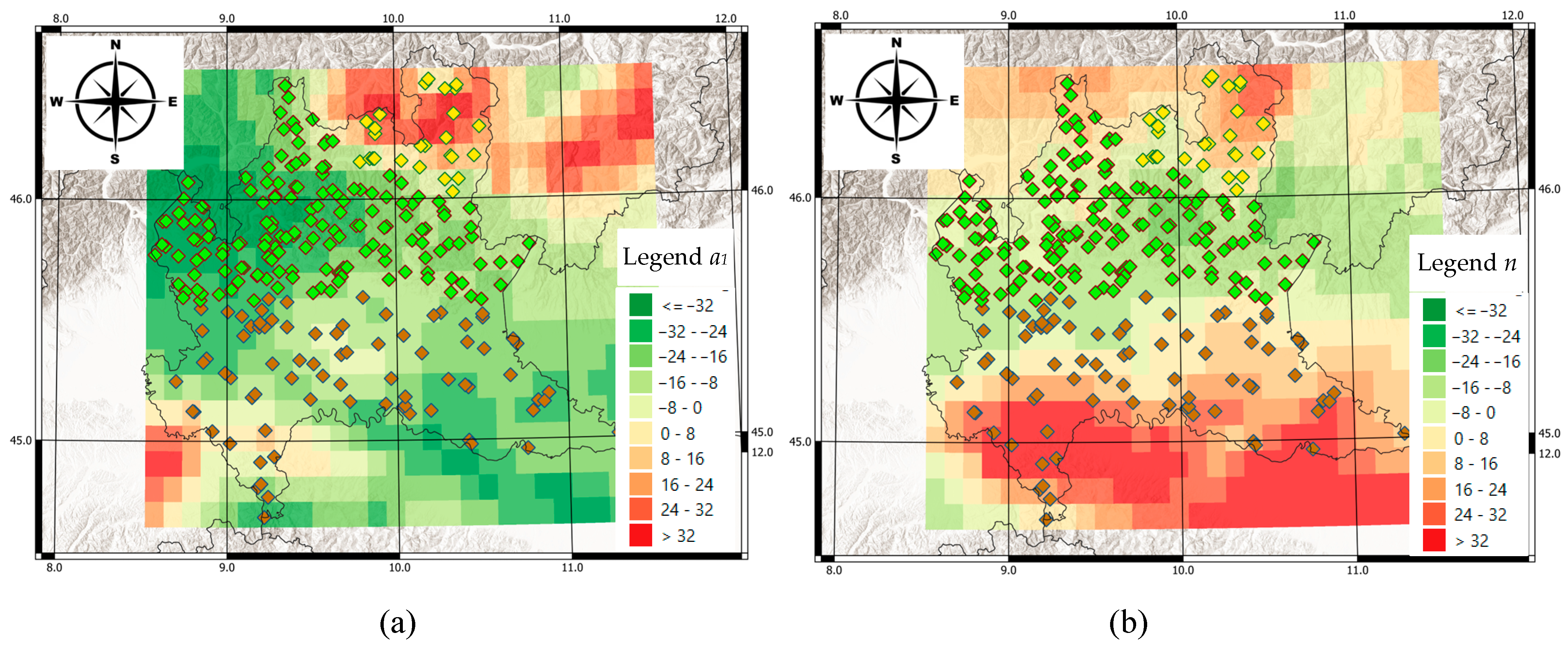 10]. Therefore, the number of stations available for the effective IDF curves calculus could be significantly lower than the entire network, giving a poor representation of IDF curves statistics in those areas where stations are less dense than normally occur across mountain ranges [