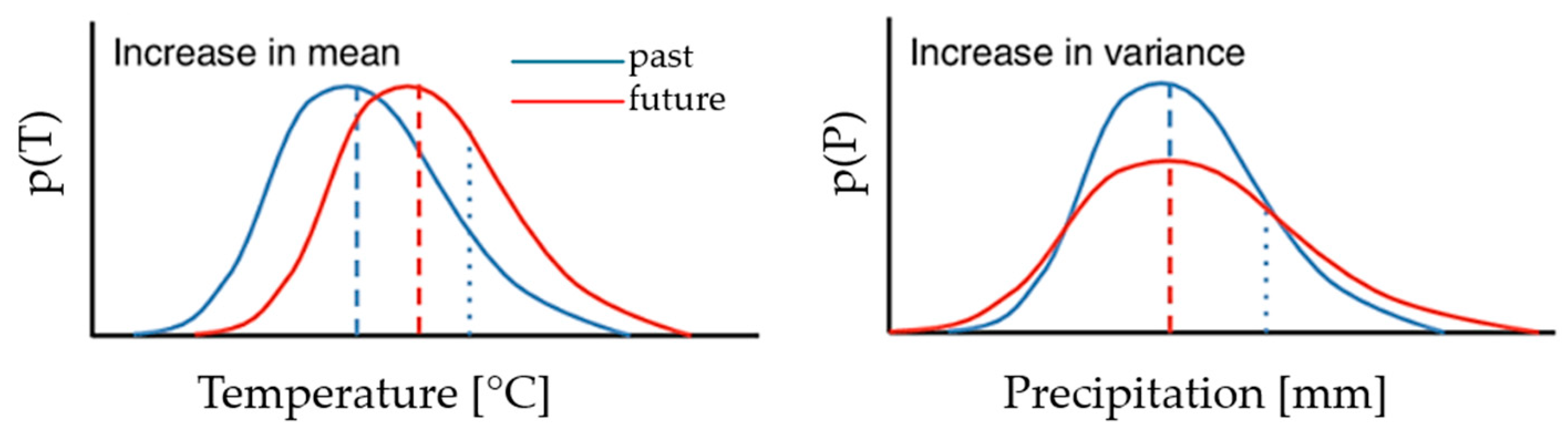 −1) and the possible temperature increments due to climate change. In