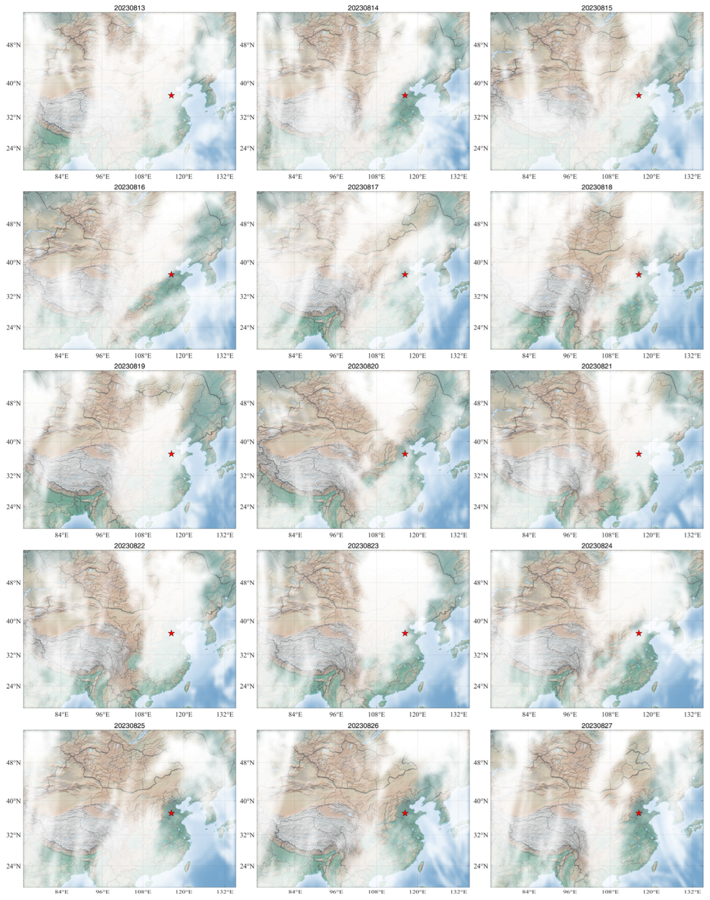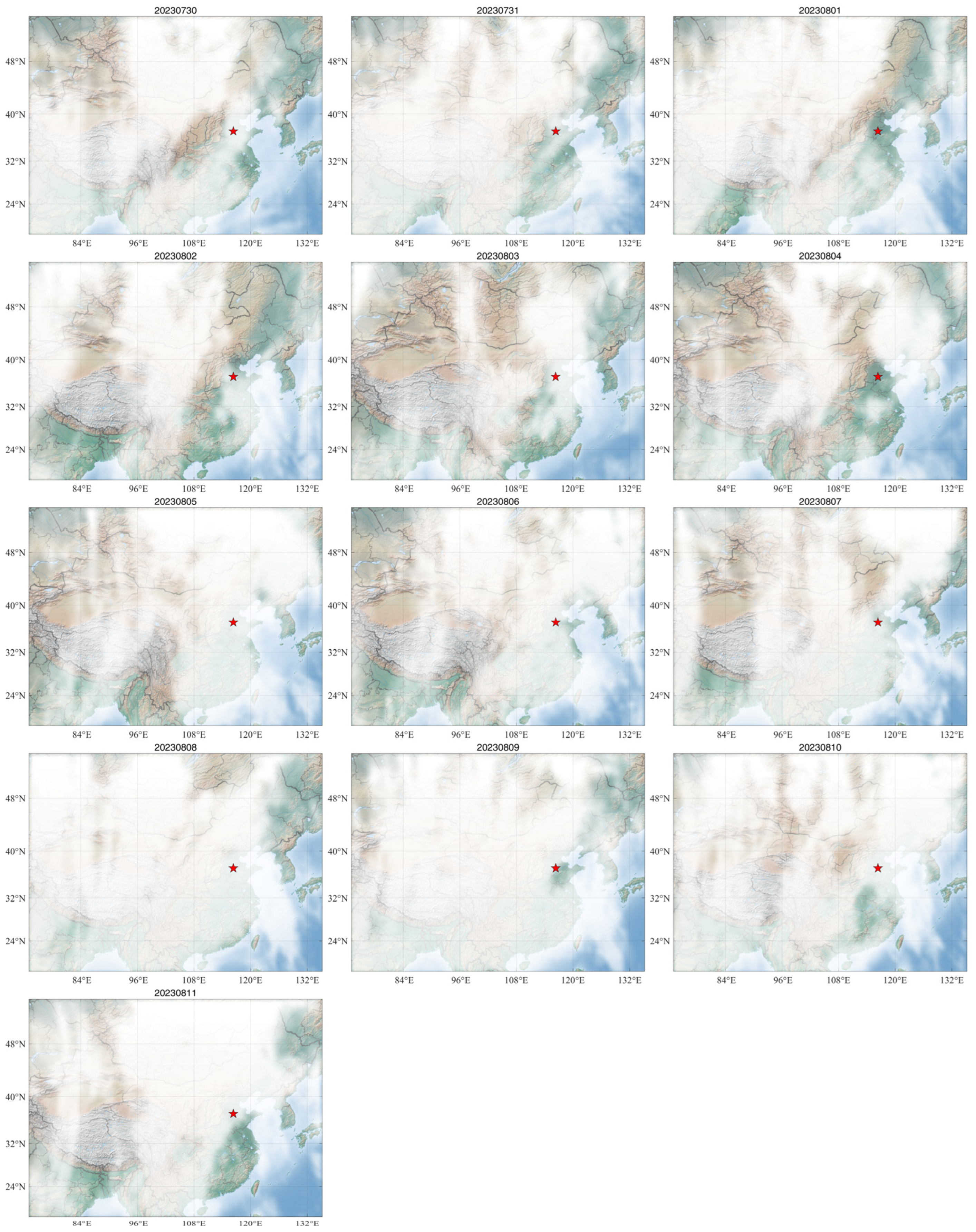 APA StyleJing, T., Cui, J., Wang, Q., Liu, J., Sun, Y., Yang, Y., & Wang, X. (2026). Observational Study on Spatiotemporal Characteristics of Outgoing Longwave Radiation Anomalies Associated with the Dezhou Ms5.5 Earthquake. Atmosphere, 17(1), 35. https://doi.org/10.3390/atmos17010035