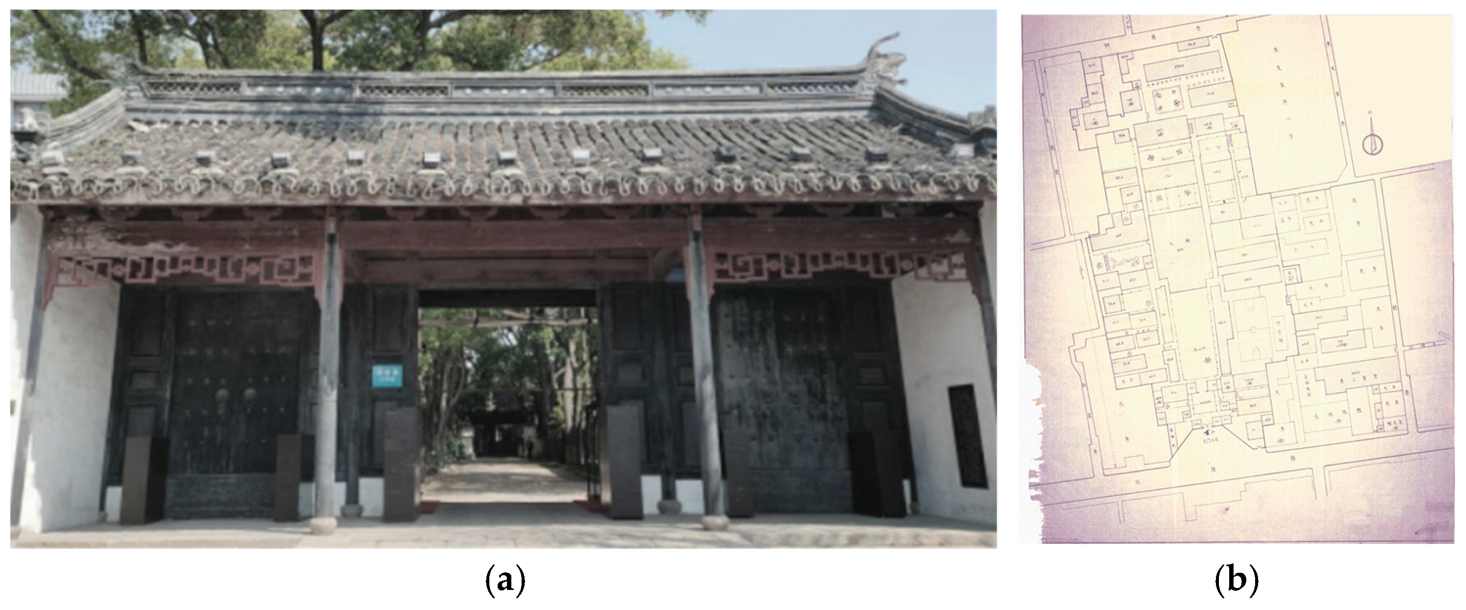 - Jiangsu Provincial Database of Immovable Cultural Relics. The Jiangsu Provincial Judicial Commissioner’s Office [DB/OL]. Available online: https://www.jslib.org.cn/trsnjapp/zjzy/bkydsjk.html (accessed on 23 September 2025).