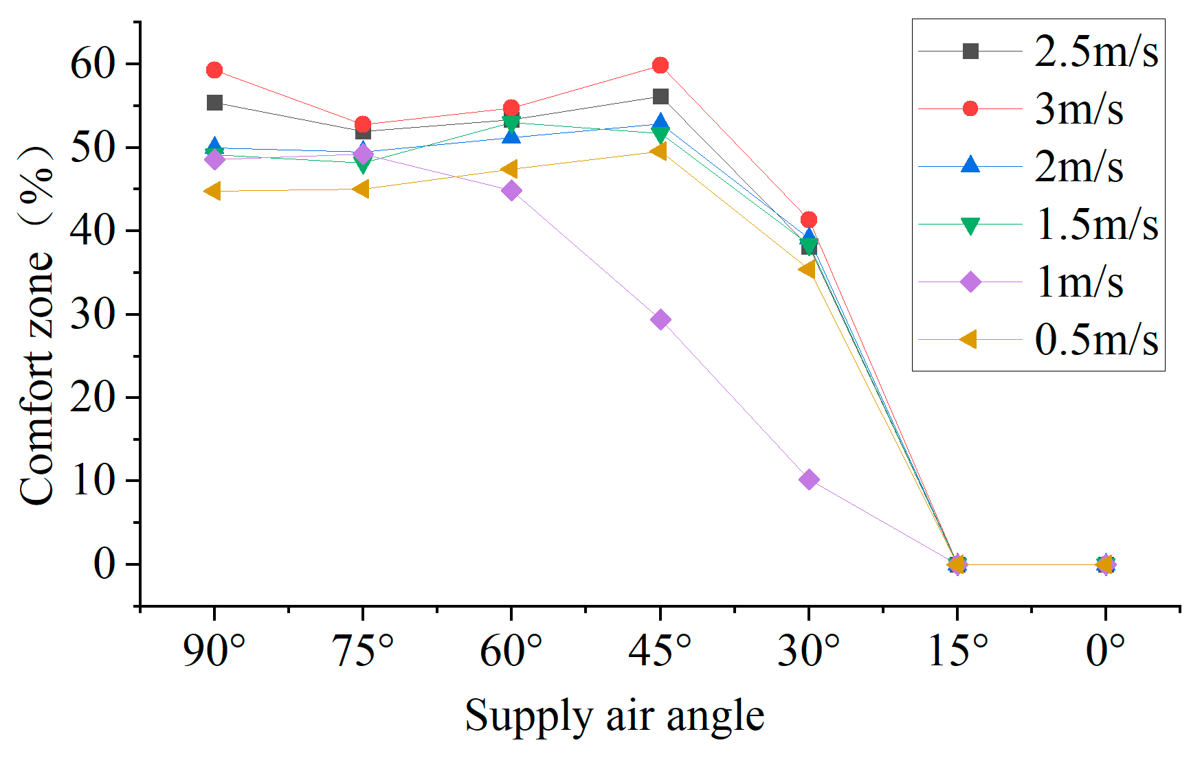 3.3.2. Effect of Supply Air Angle on the Distribution of Indoor Comfort Zones