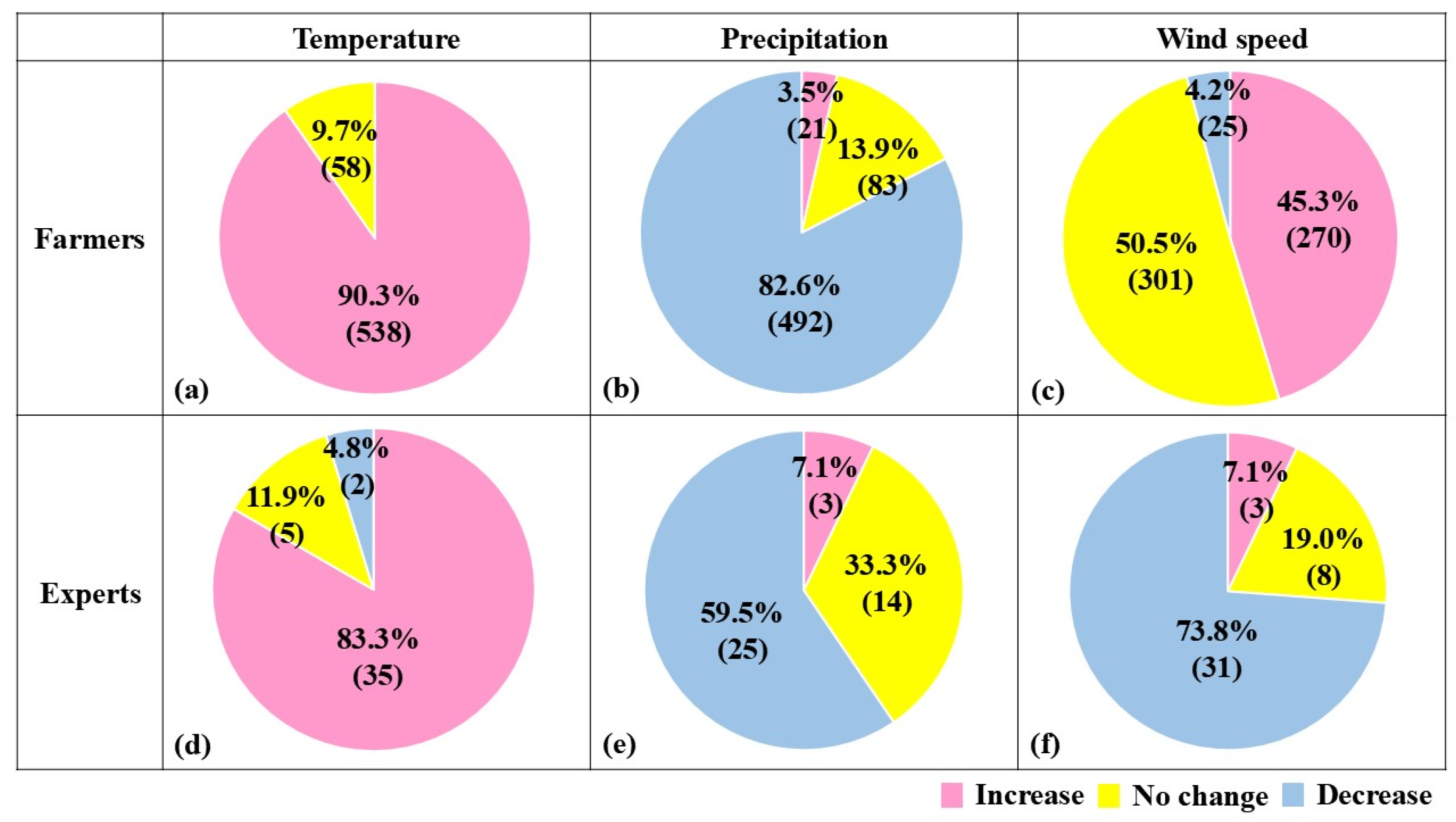 4.1. Analysis of Farmers’ Perceptions of Climate Change