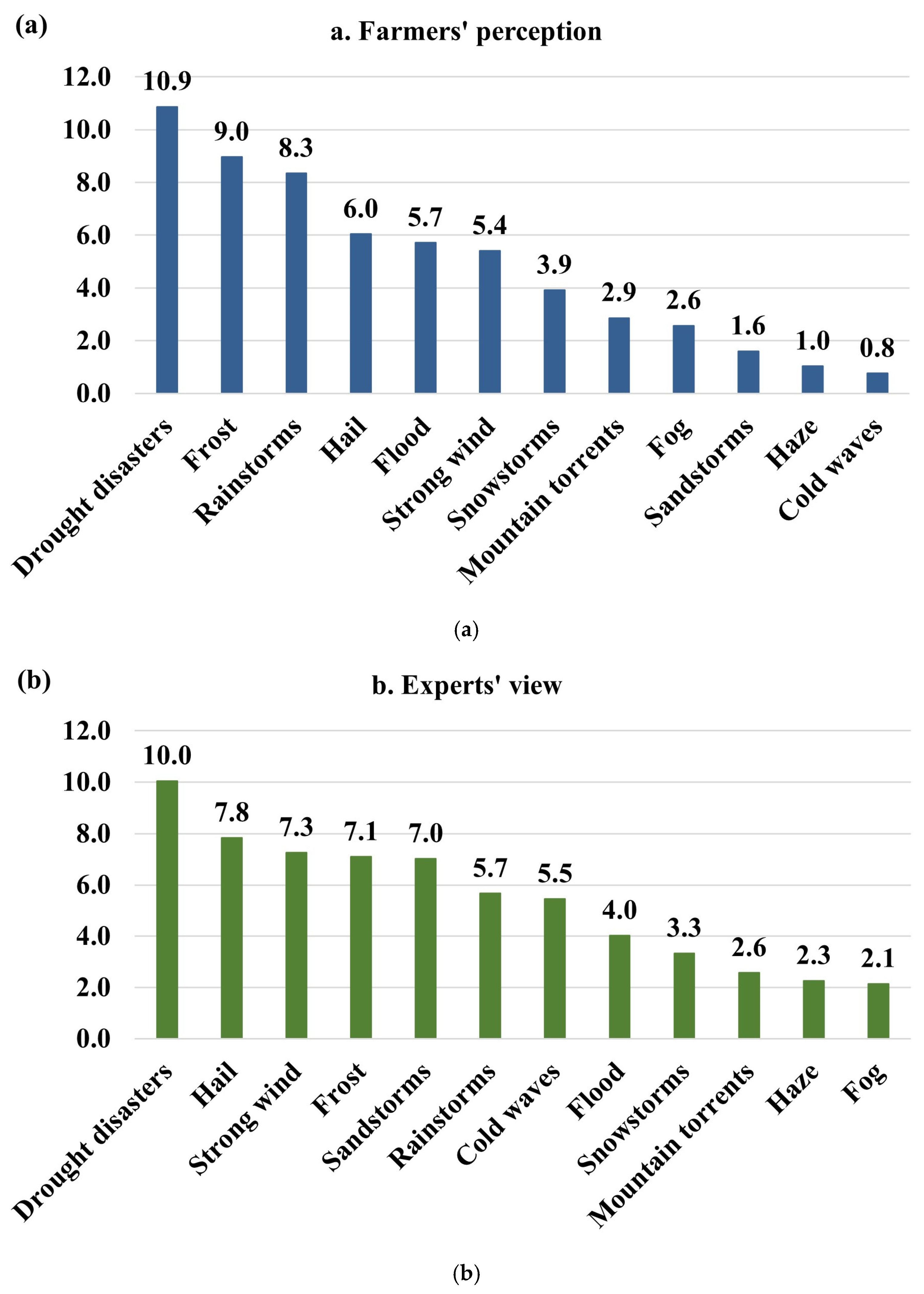 4.2. Analysis of Farmers’ Perception of Meteorological Disasters