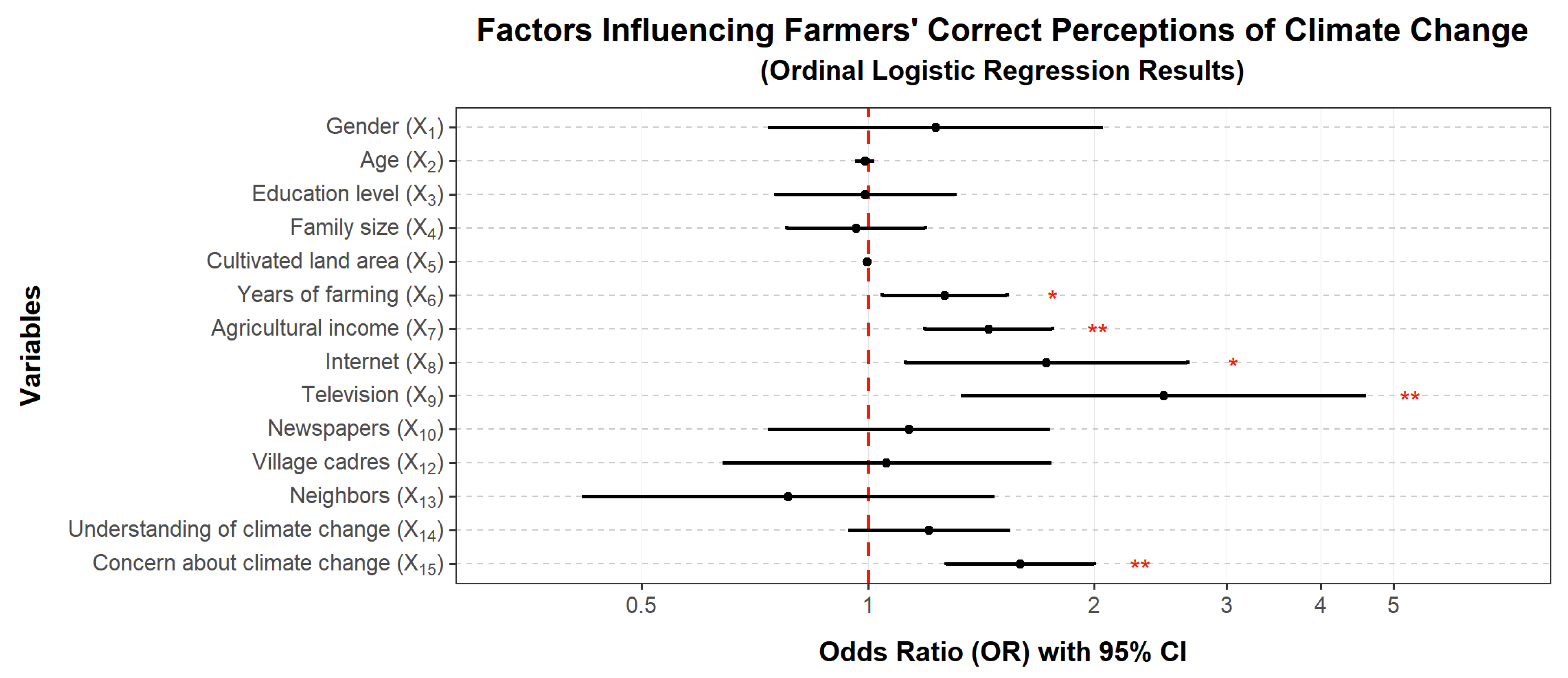 3.5. Factors Affecting Farmers’ Correct Perceptions of Climate Change